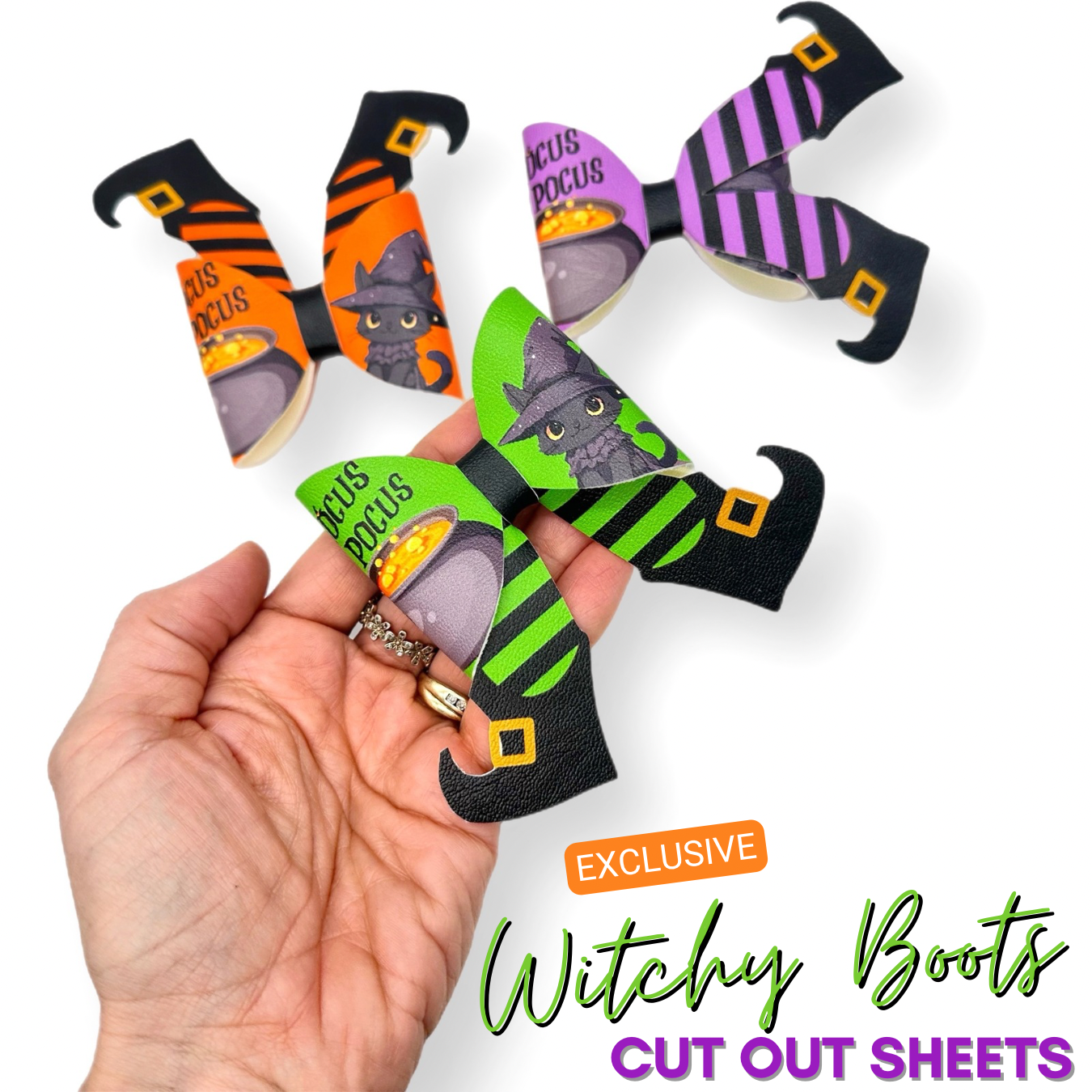 Witchy Boots Faux Leather DIY Hair Bow Loops & Craft Cutout Sheets