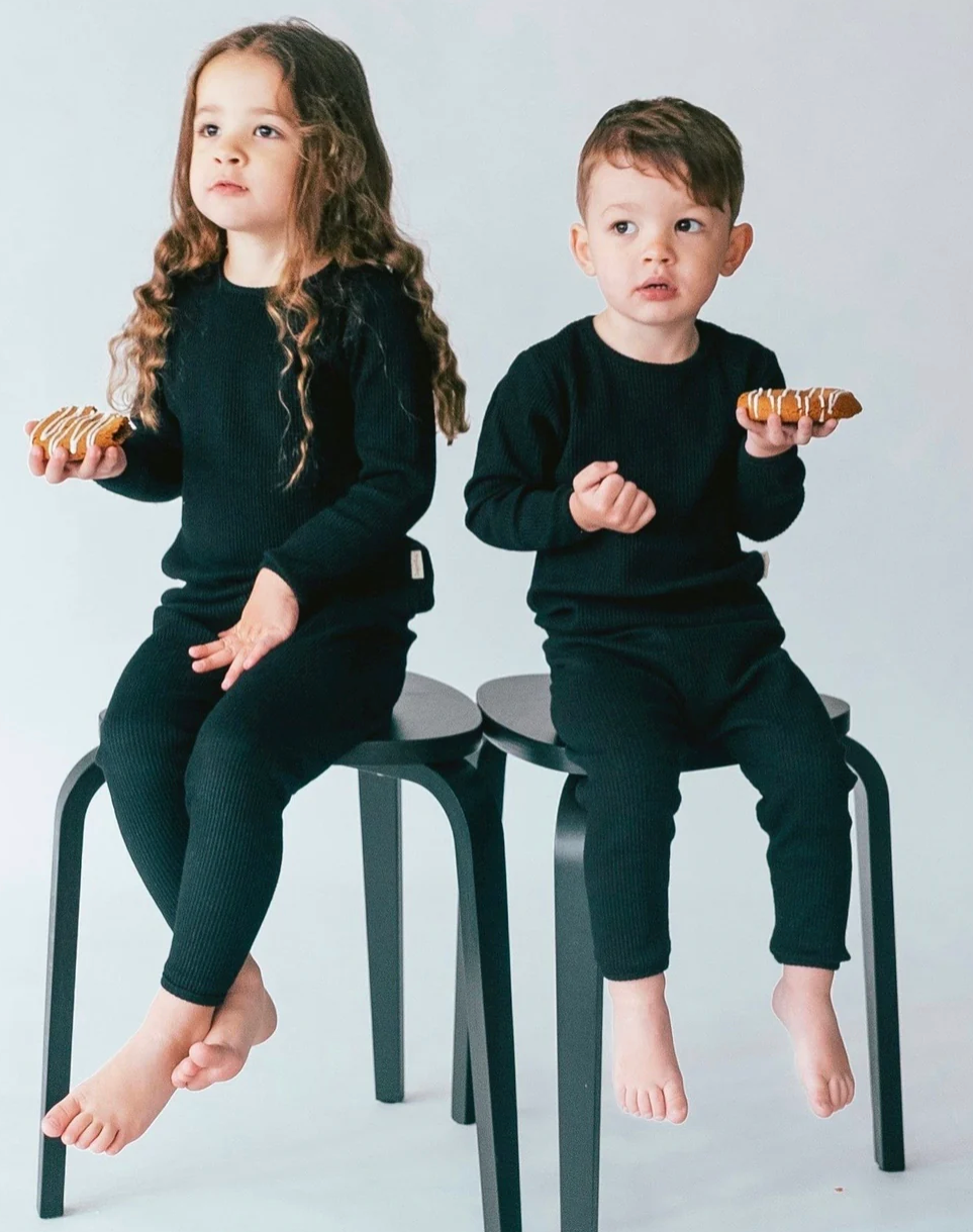 KIDS BLACK RIBBED LOUNGE SETS- UNISEX PYJAMAS