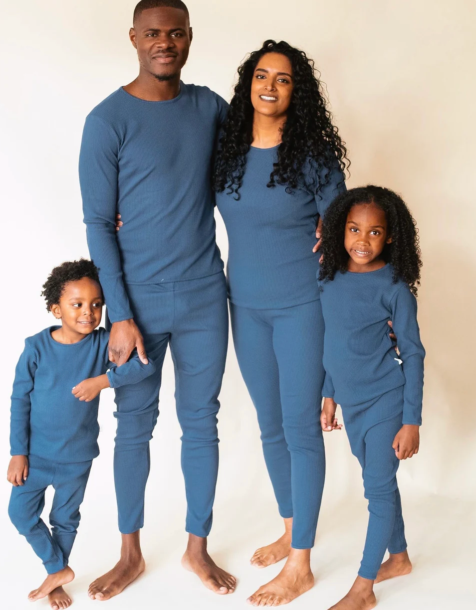 KIDS MIDNIGHT BLUE RIBBED LOUNGE SETS- UNISEX PYJAMAS