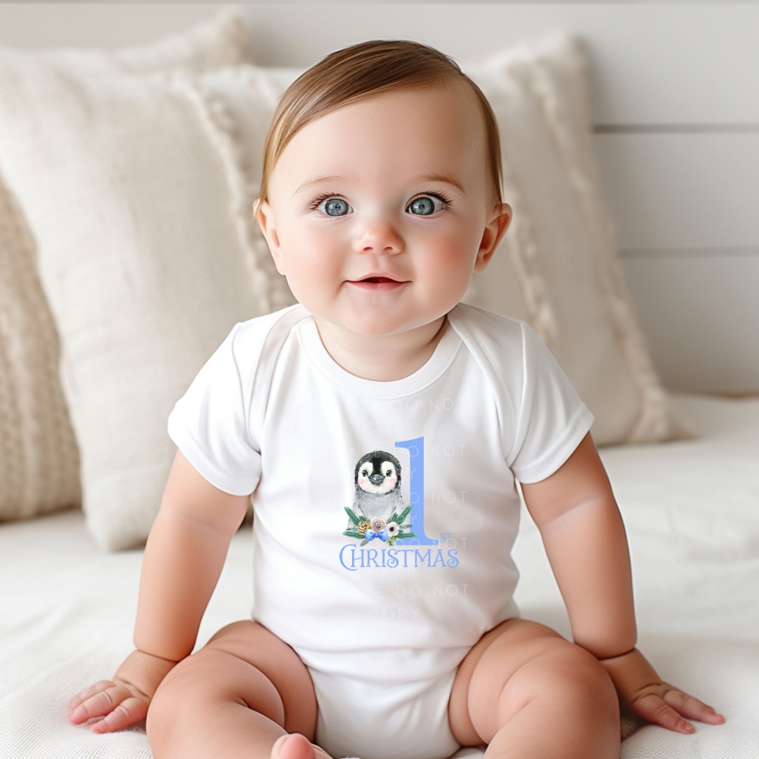 1st Christmas Penguin blue DTF Full Colour Transfers