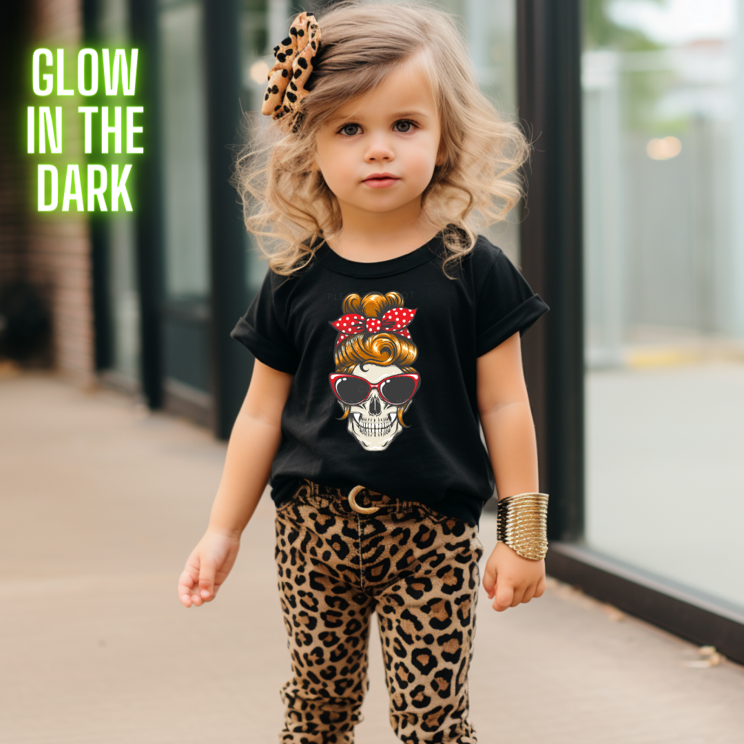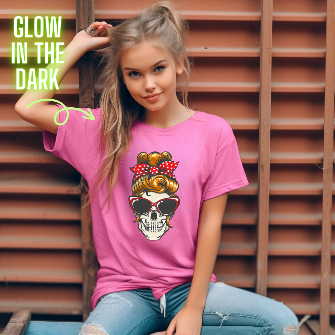 Bow Skeleton Glow in the Dark Full Colour Iron on T Shirt Transfers