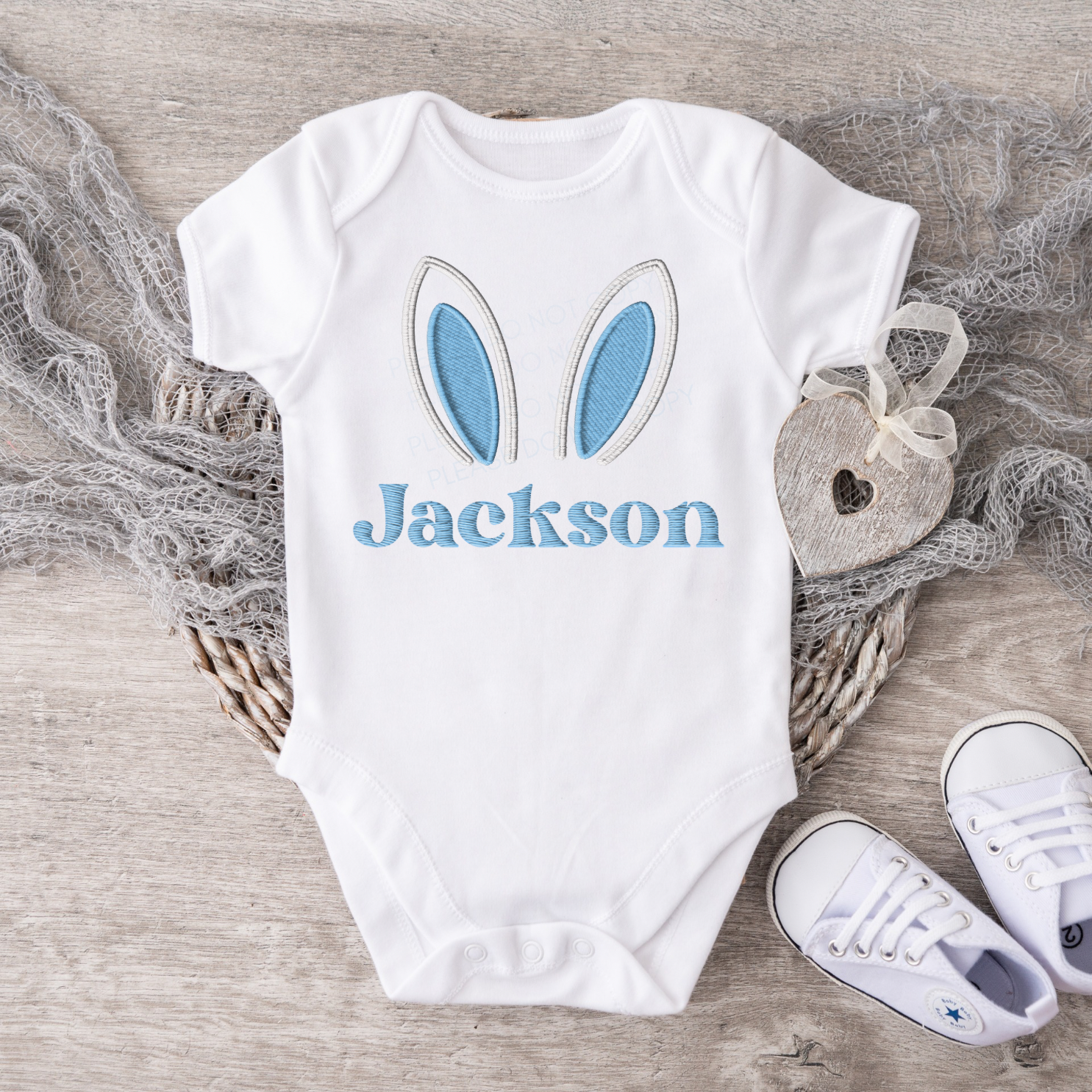 CUSTOM DTF TRANSFER - BUNNY EARS BLUE- EMBROIDERY EFFECT