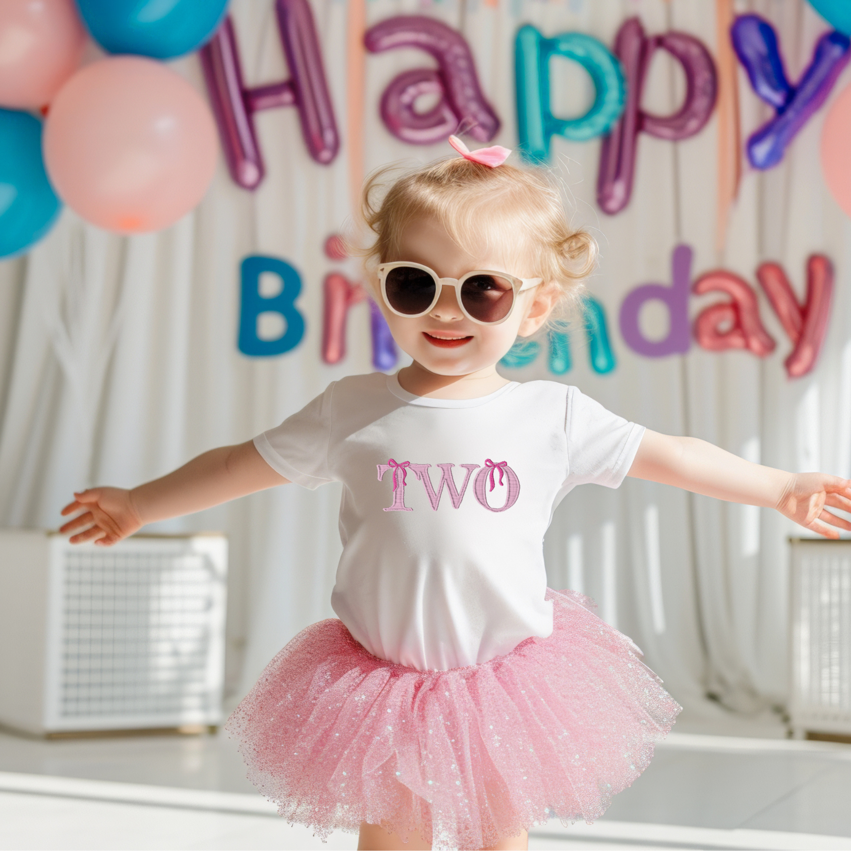 DTF TRANSFER - PINK BIRTHDAY NUMBER WORDS EMBROIDERY EFFECT