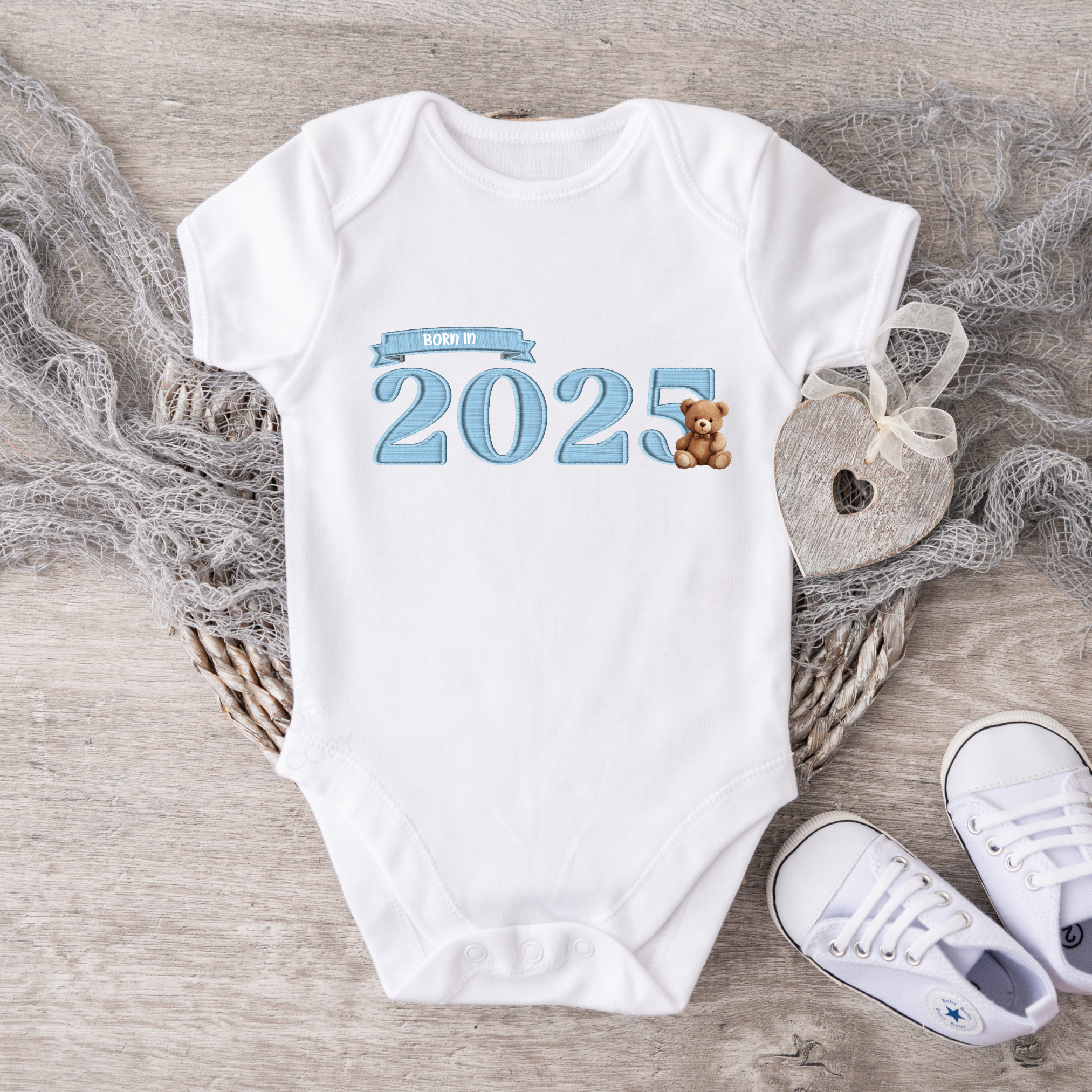 DTF TRANSFER - BORN IN 2025- BLUE- EMBROIDERY EFFECT