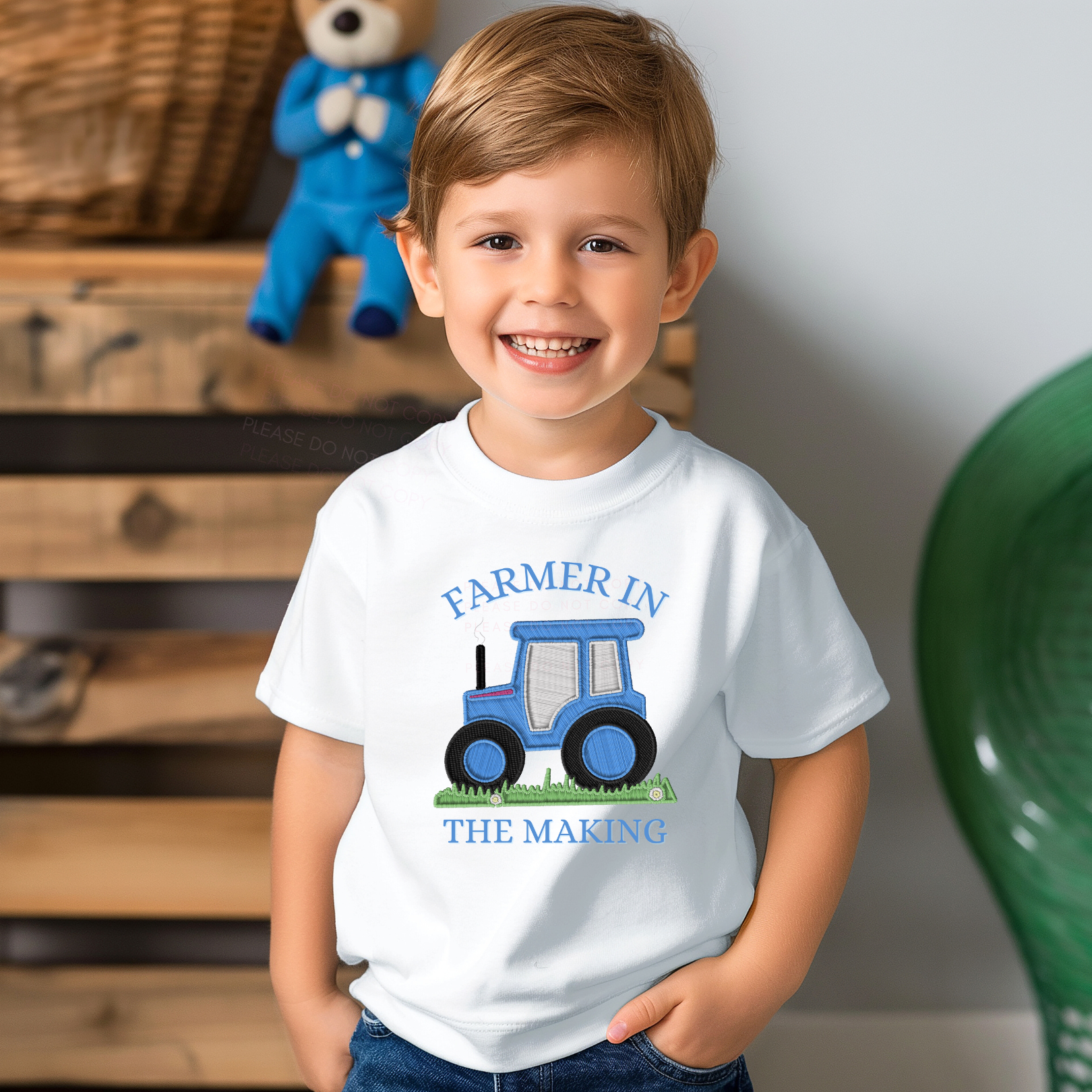 DTF TRANSFER - EMBROIDERY EFFECT- FARMER IN THE MAKING- BLUE OR GREEN