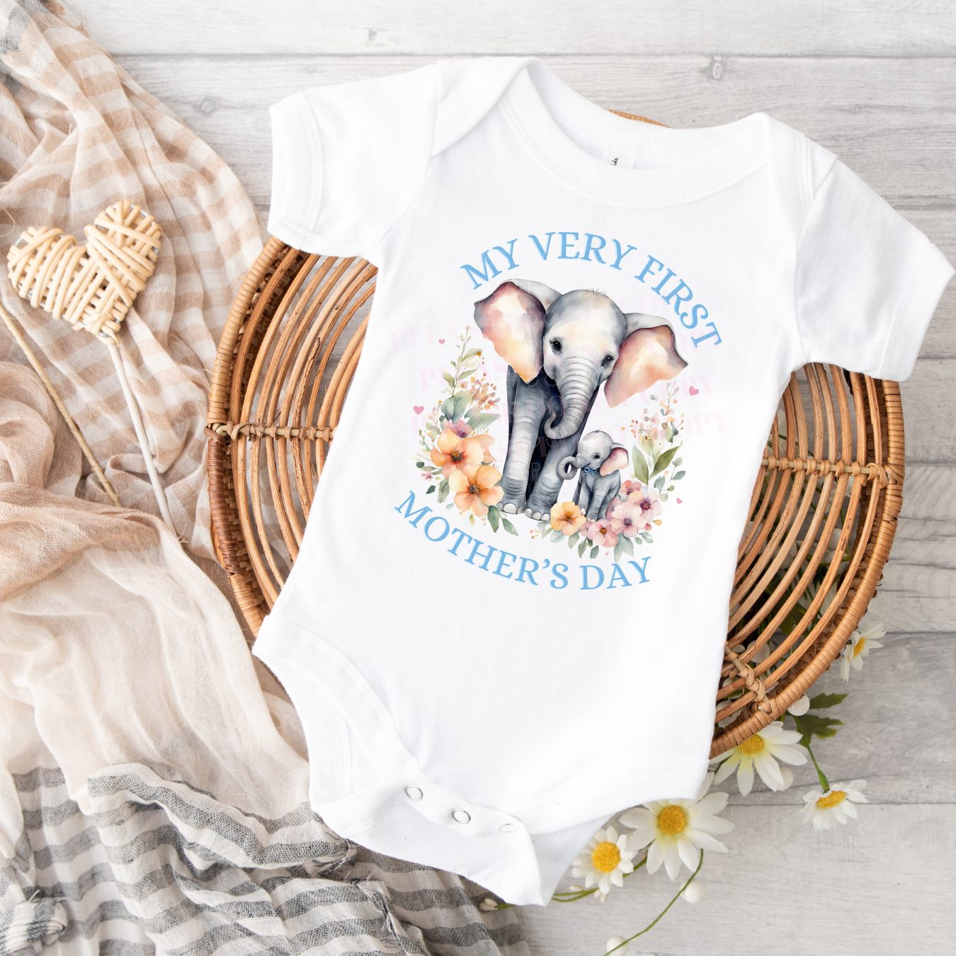 DTF TRANSFER - MY VERY FIRST MOTHER'S DAY - BLUE BABY ELEPHANT & MUMMY - 2 SIZES