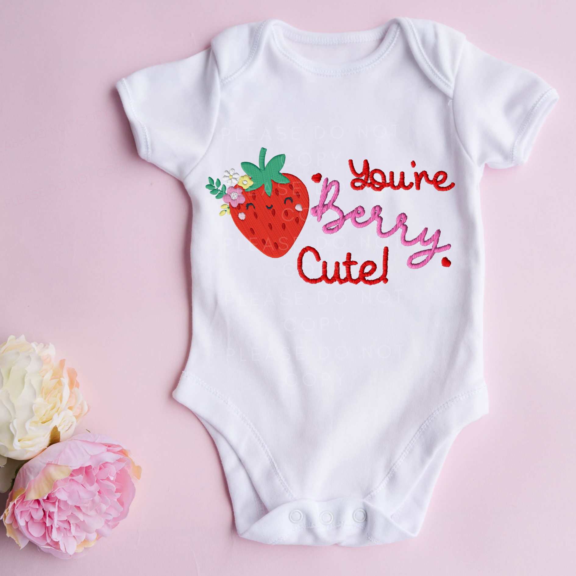 DTF TRANSFER - YOU’RE BERRY CUTE- STRAWBERRIES- EMBROIDERY EFFECT