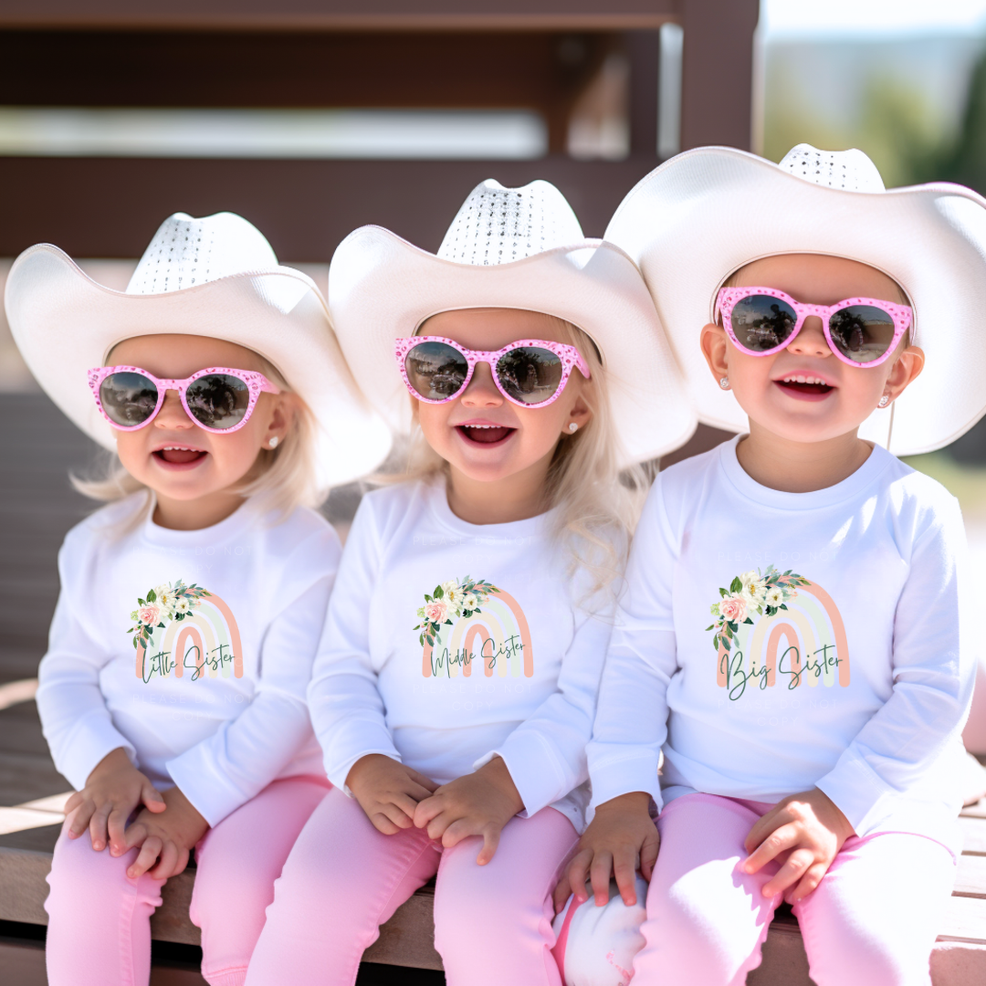 Floral Rainbows Big Sister, Little Sister, Middle Sister DTF Full Colour Transfers