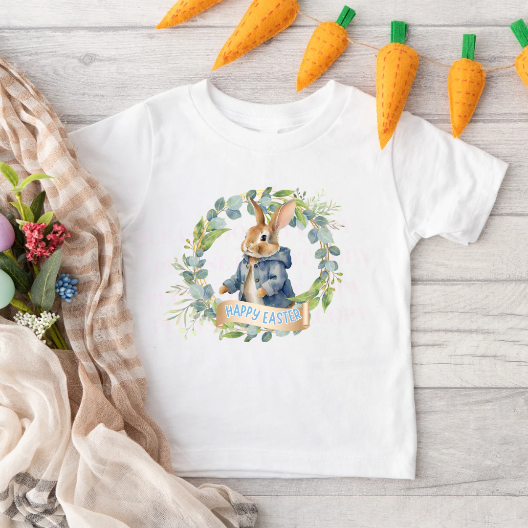 Happy Easter Wreath Blue Bunny DTF Full Colour Transfers