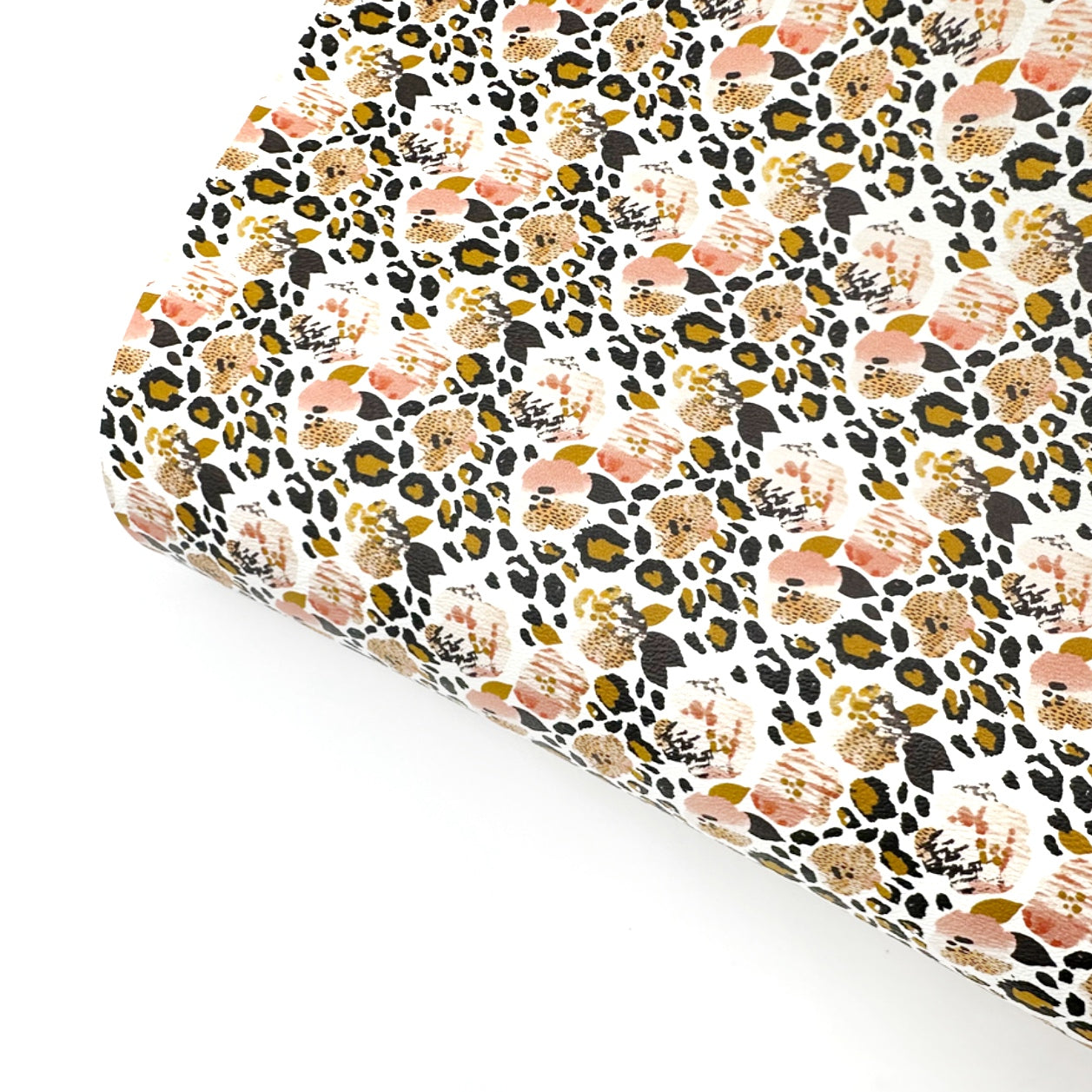 Blush Leopard Blooms Premium Faux Leather Fabric Sheets