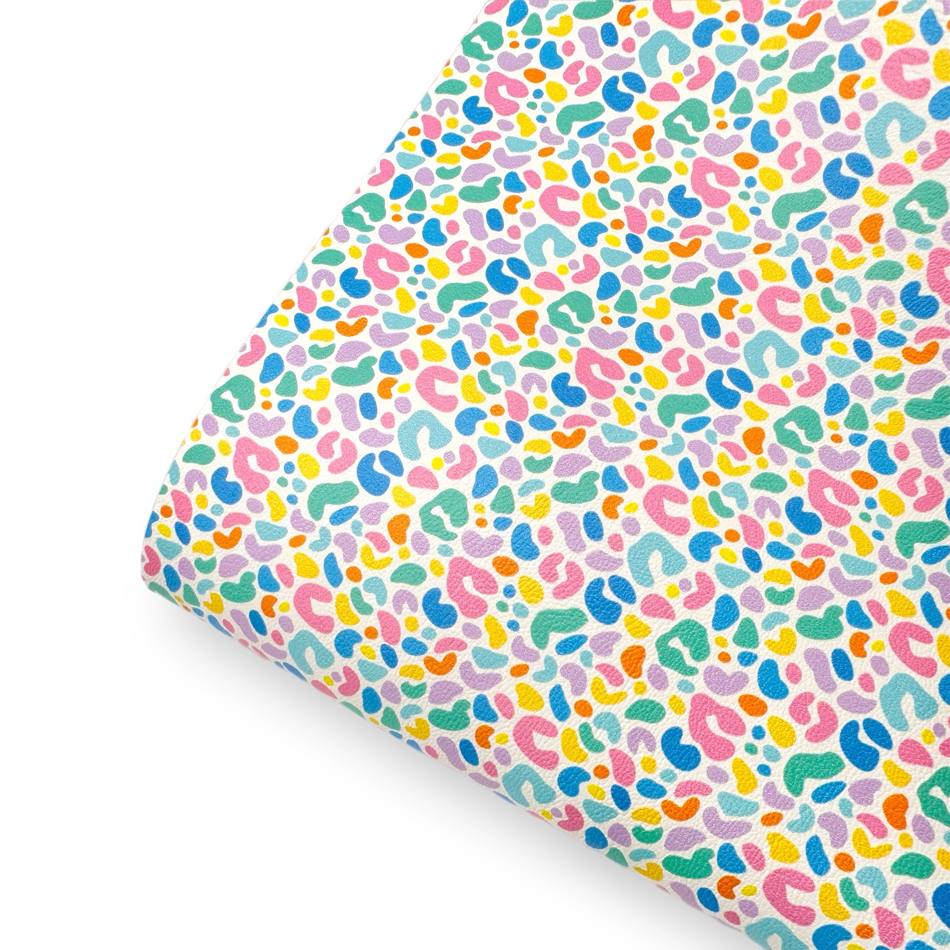 Bright Rainbow Leopard Premium Faux Leather Fabric