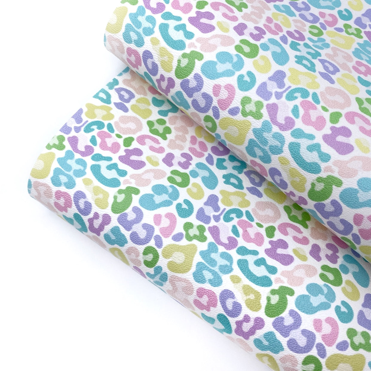 Ice Cream Leopard Print Premium Faux Leather Fabric Sheets