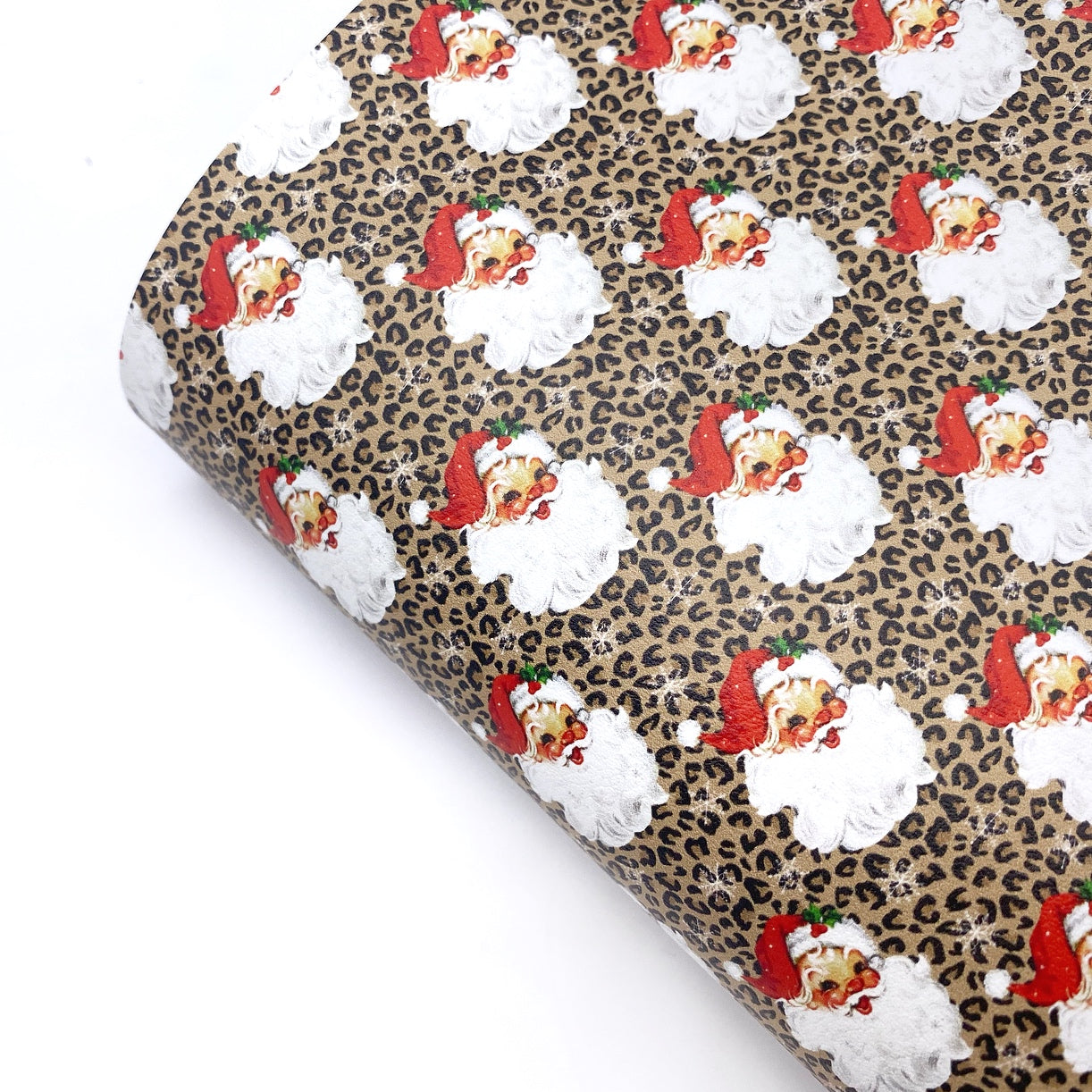 Leopard Print Red Santa Premium Faux Leather Fabric Sheets