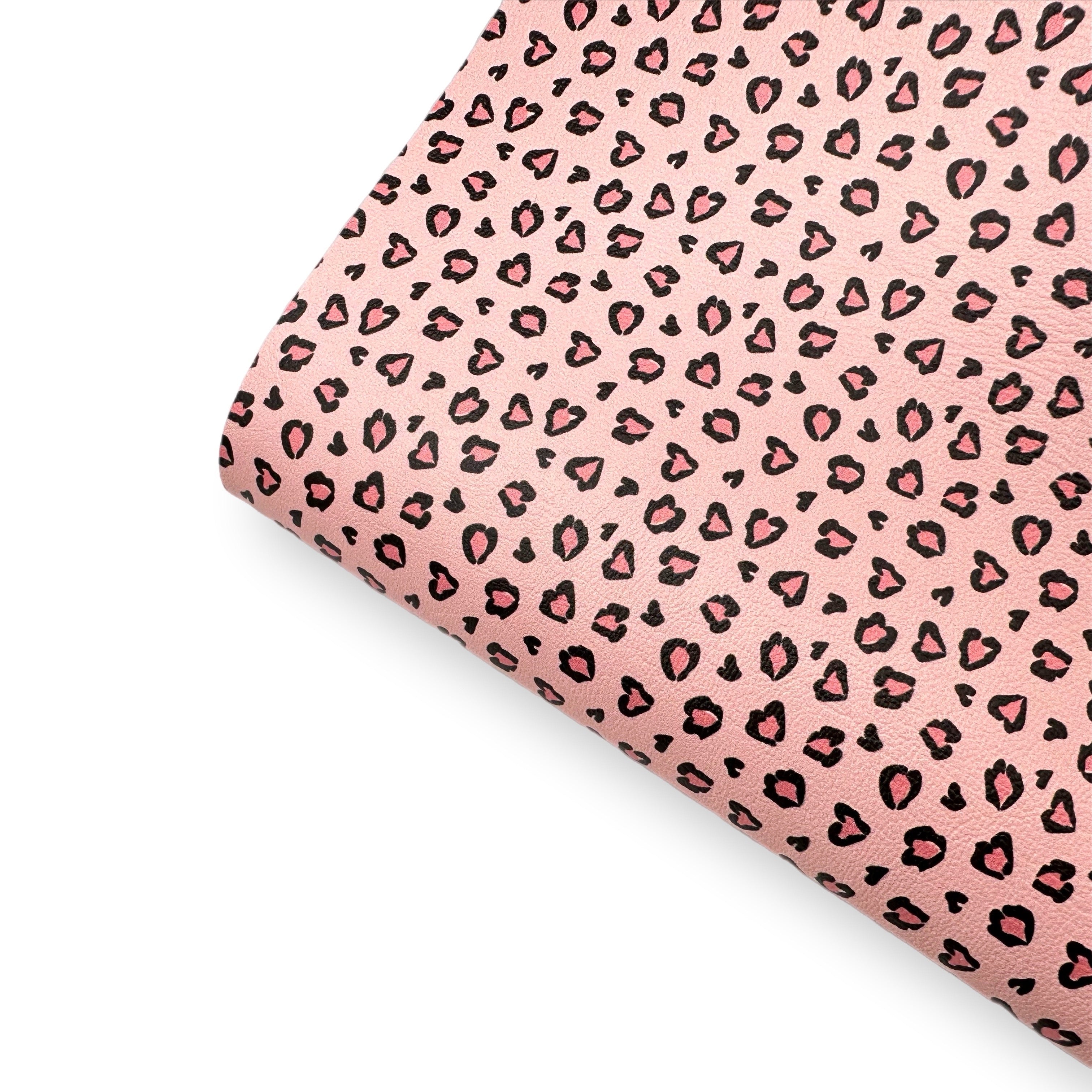 Pink Love Heart Leopard Premium Faux Leather Fabric