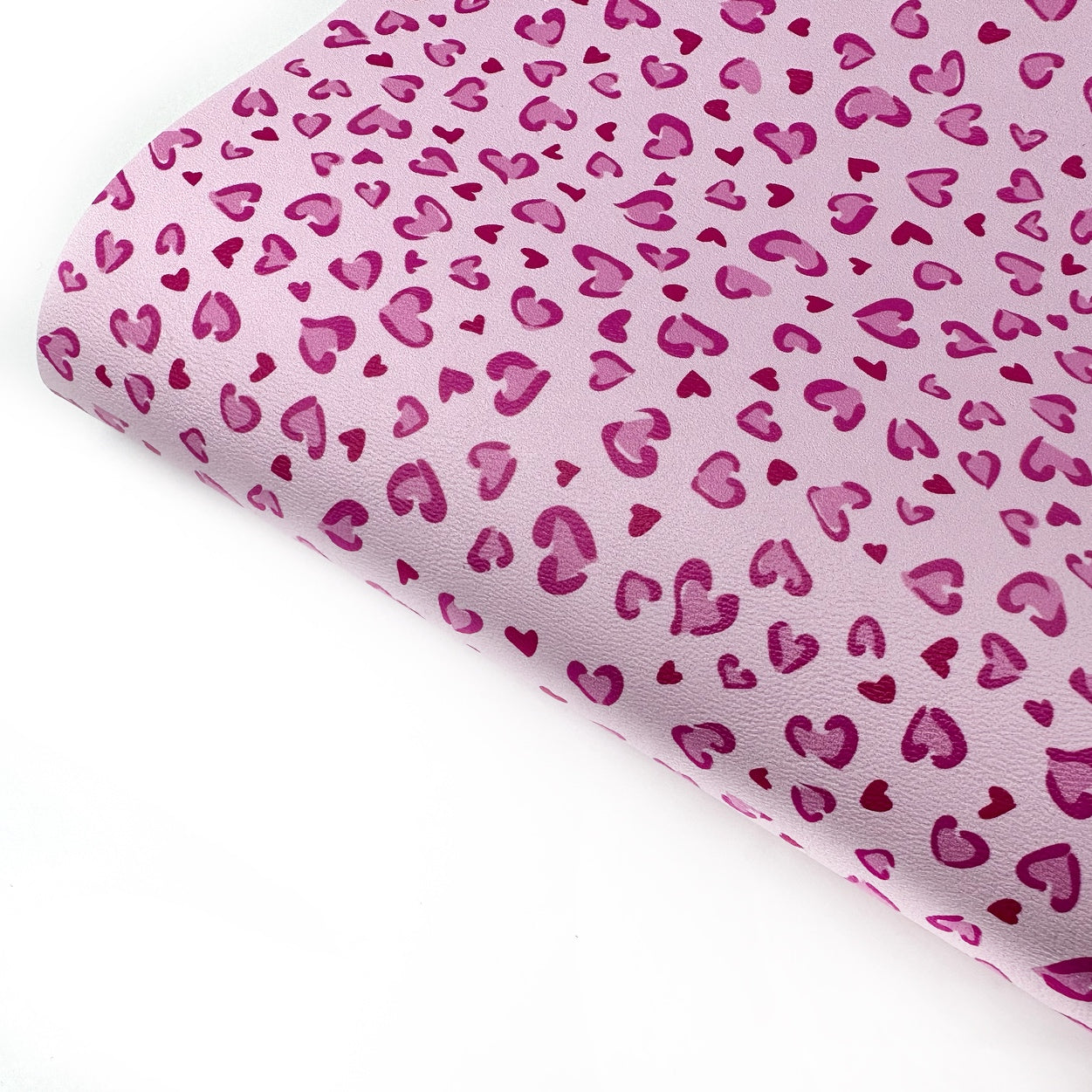 Pink Leopard Heart Print Premium Faux Leather Fabric Sheets