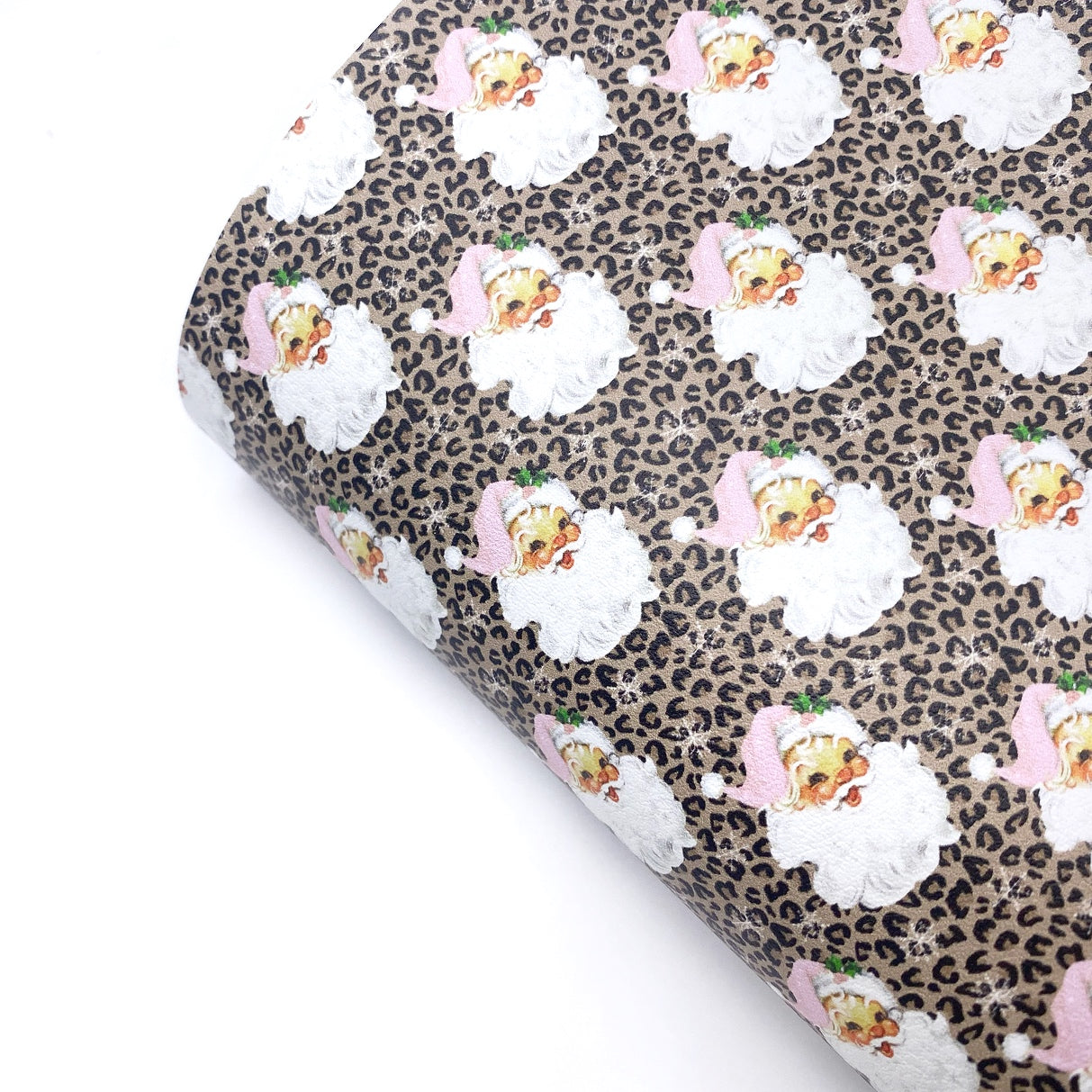 Leopard Print Pink Santa Premium Faux Leather Fabric Sheets