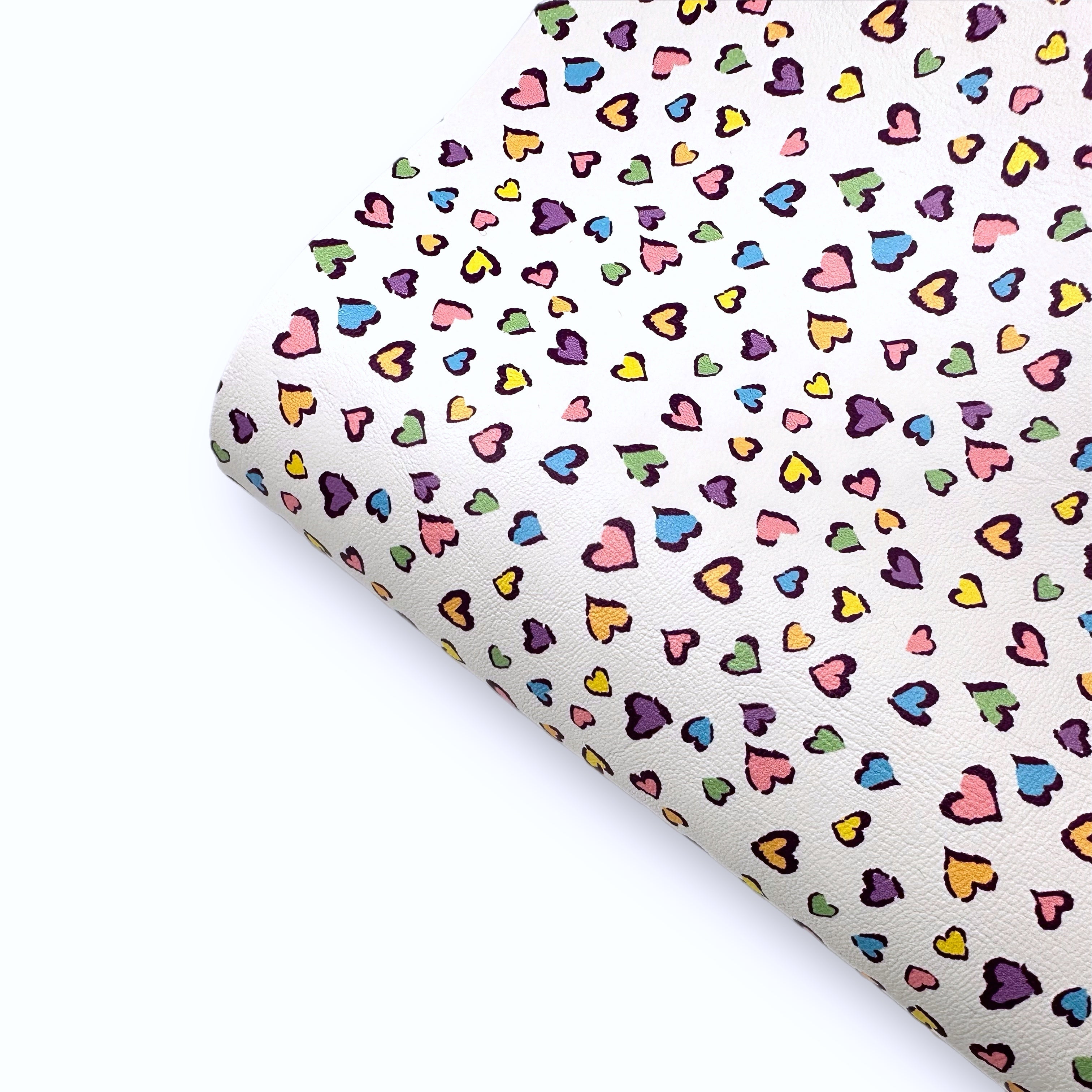 Rainbow Love Heart Leopard Premium Faux Leather Fabric