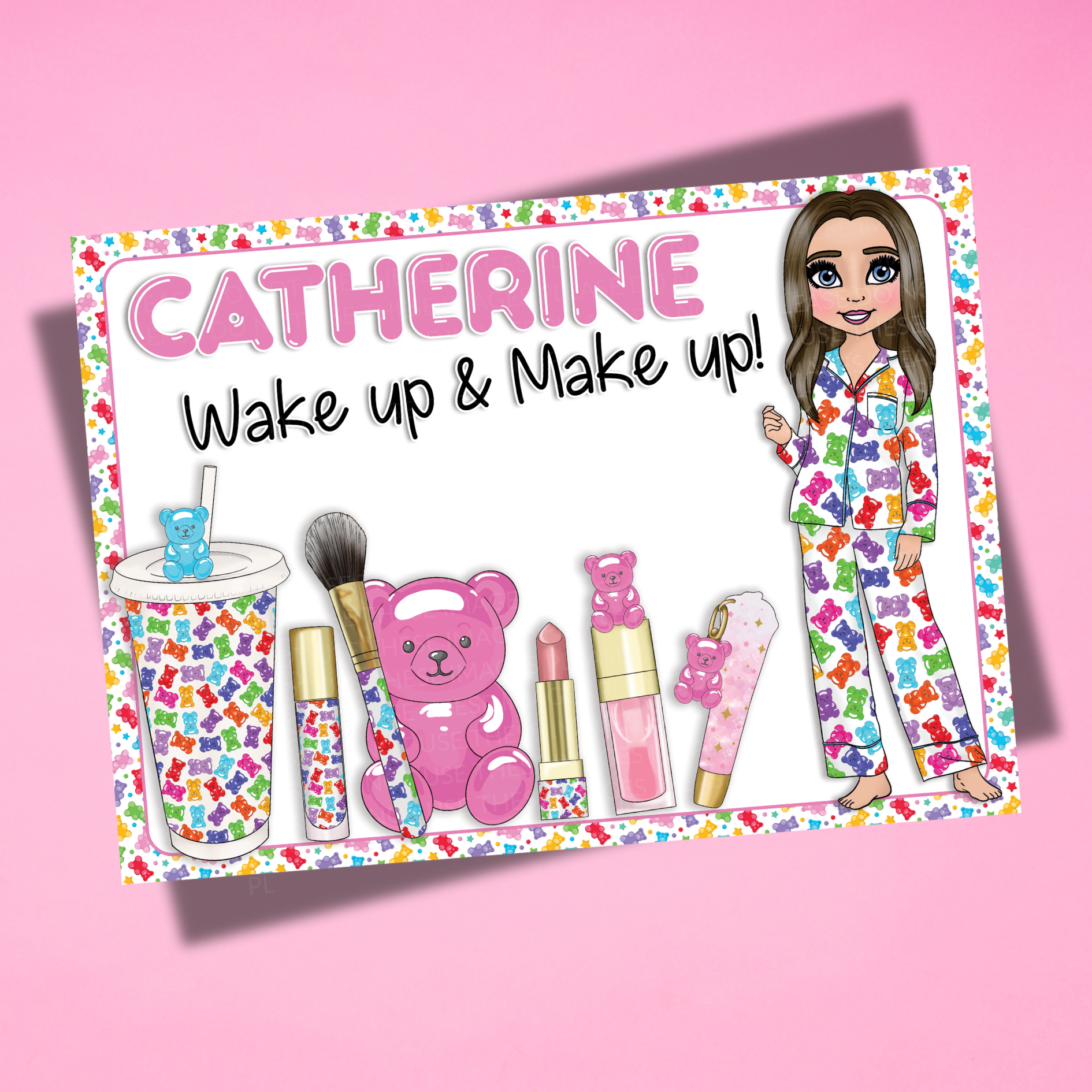 PERSONALISED FAUX LEATHER MAKE UP MATS | WOMEN'S CANDY BEAR DOLLY PJ'S EDITION