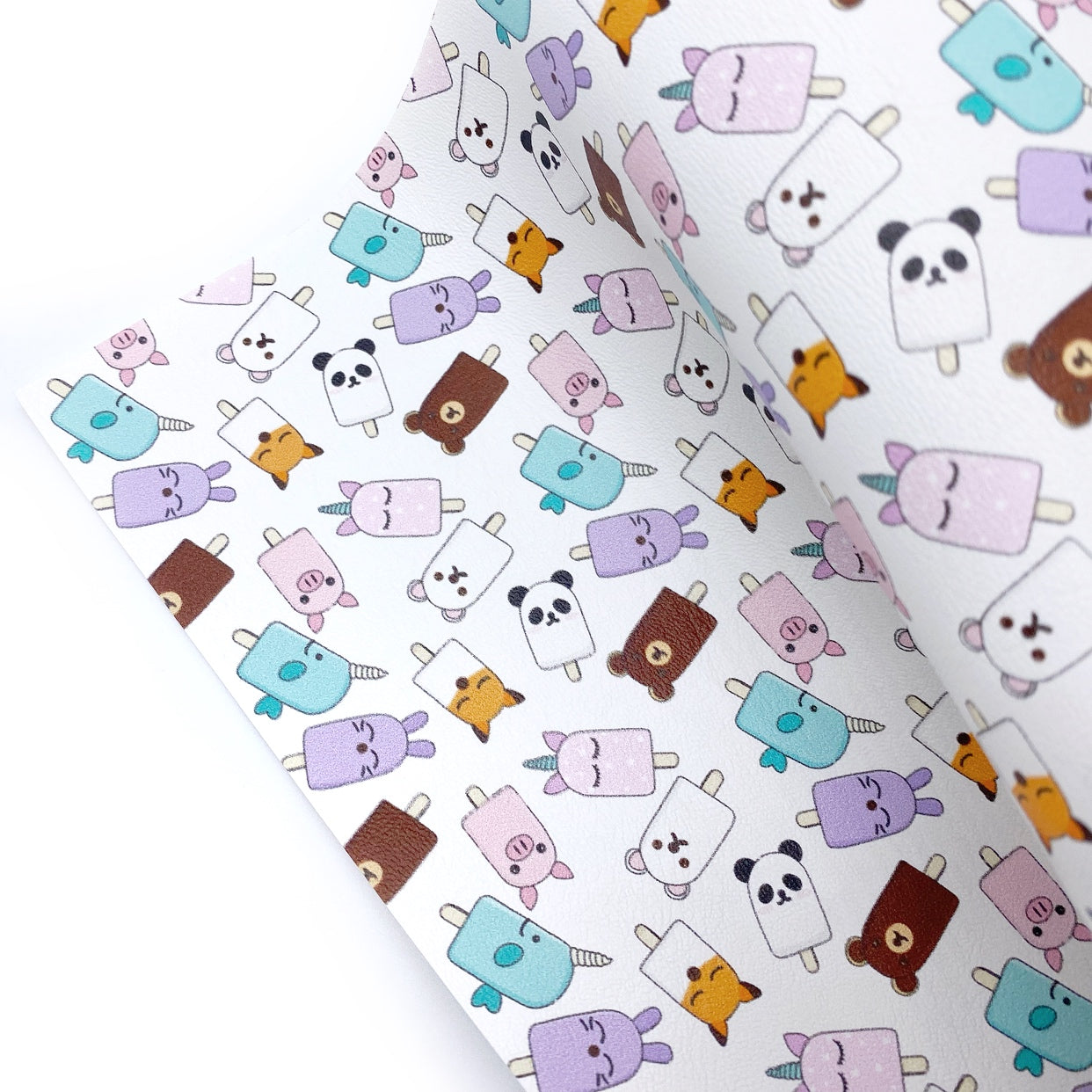 Animal Lolly Ices Premium Faux Leather Fabric Sheets