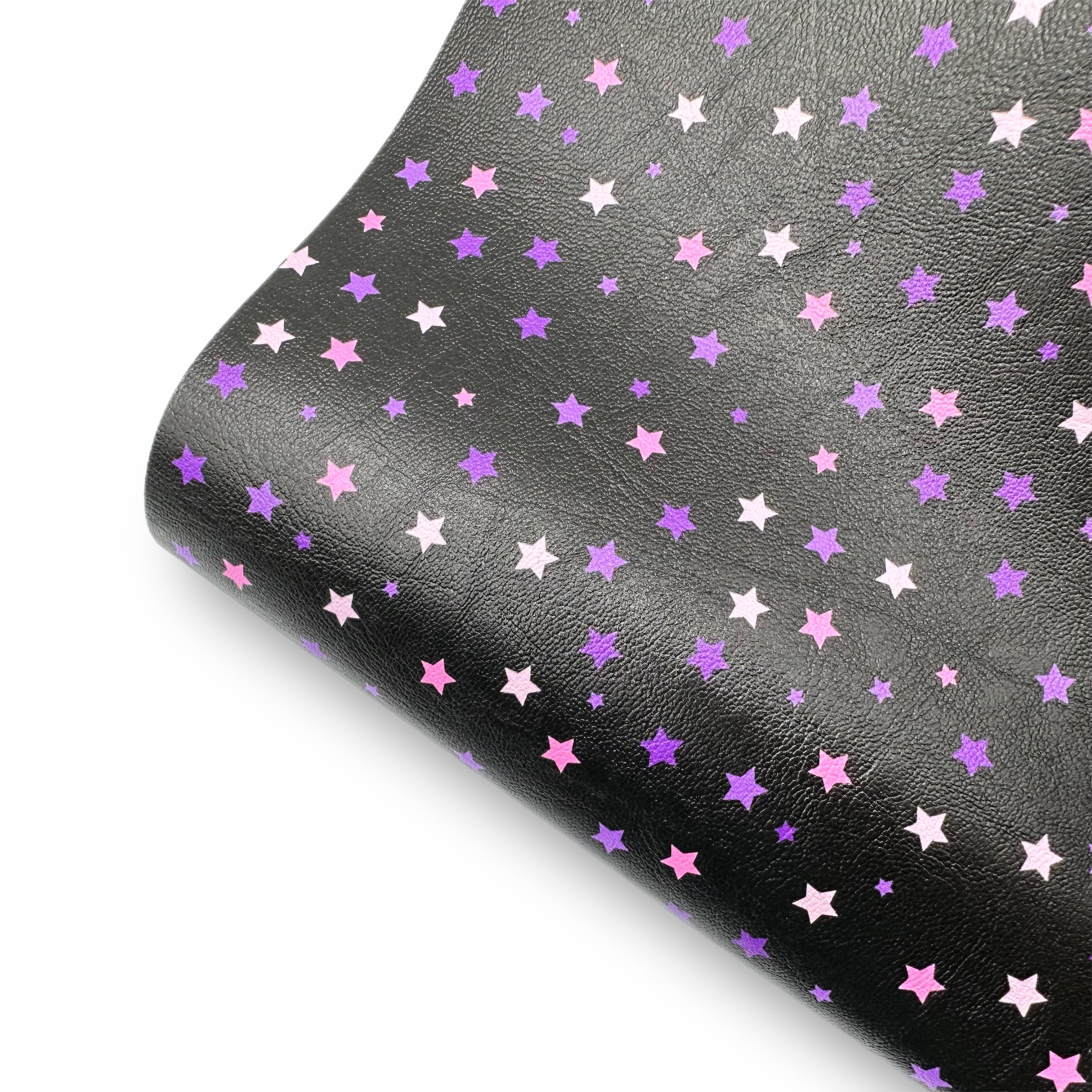 Black Night Stars Premium Faux Leather Fabric Sheets