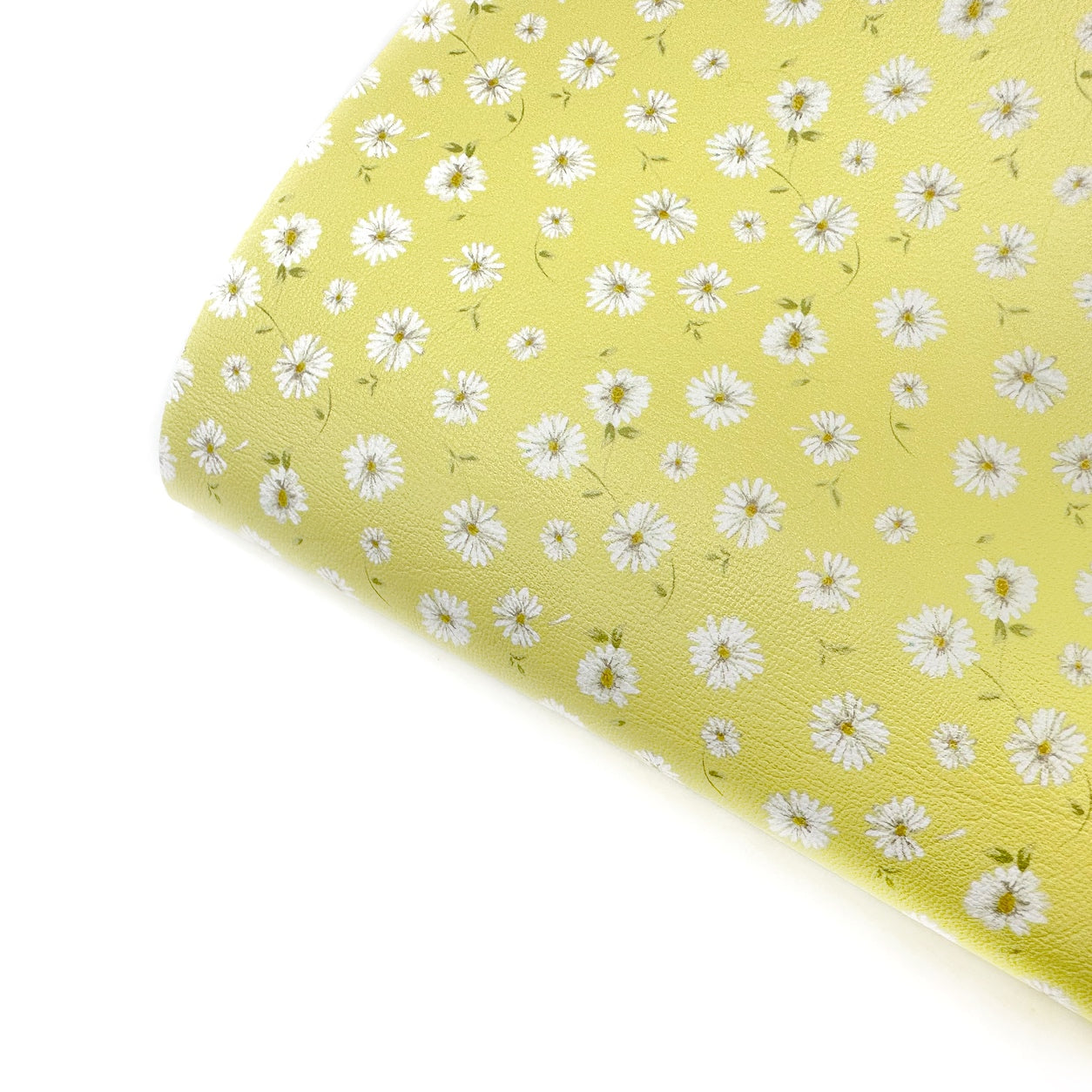 Bright Lemon Daisy Petals Premium Faux Leather Fabric Sheets