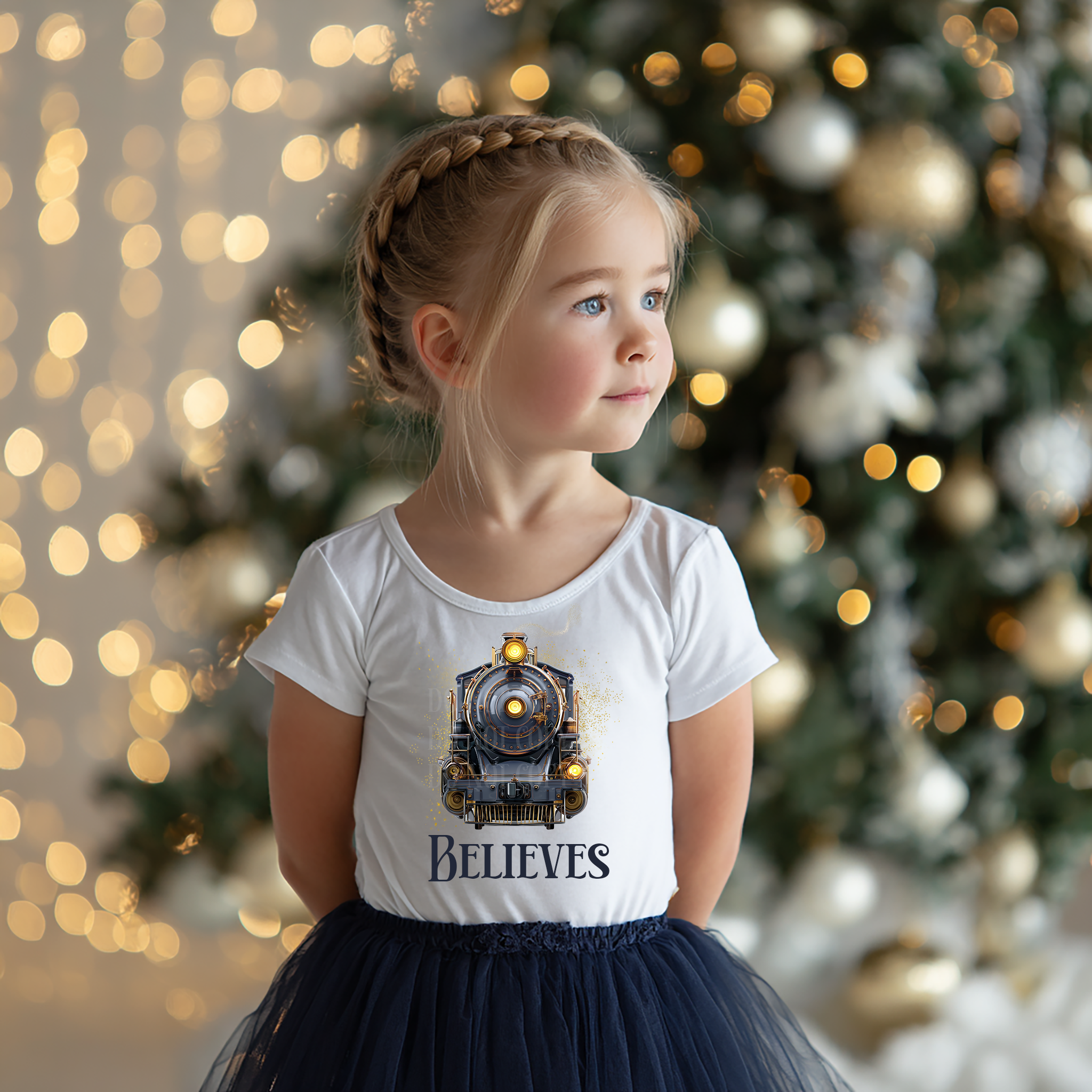 CUSTOM DTF TRANSFER - NAVY PERSONALISED BELIEVES TRAIN