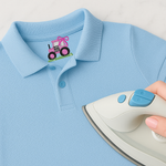 CUSTOM DTF CLOTHING LABELS- PINK TRACTOR- IRON ON