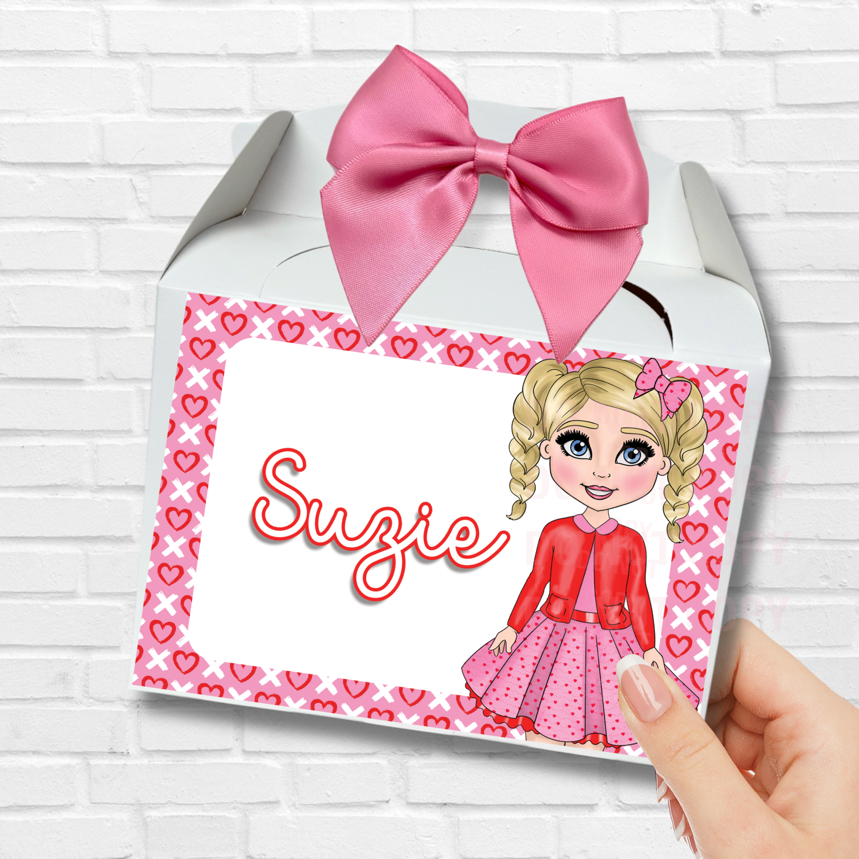 CUTESY HEART DOLLY GIRL PRINTED TREAT BOX LABELS- SOLVENT DECAL