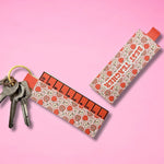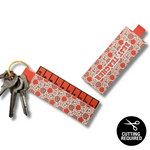 Carefully cut out your keyring. The edges of the ruler are straight so you can just use a ruler and a rotary blade to trim this part and scissors for the smaller areas. These are double sided so you just flip them over and seal them together with adhesive or hot glue.