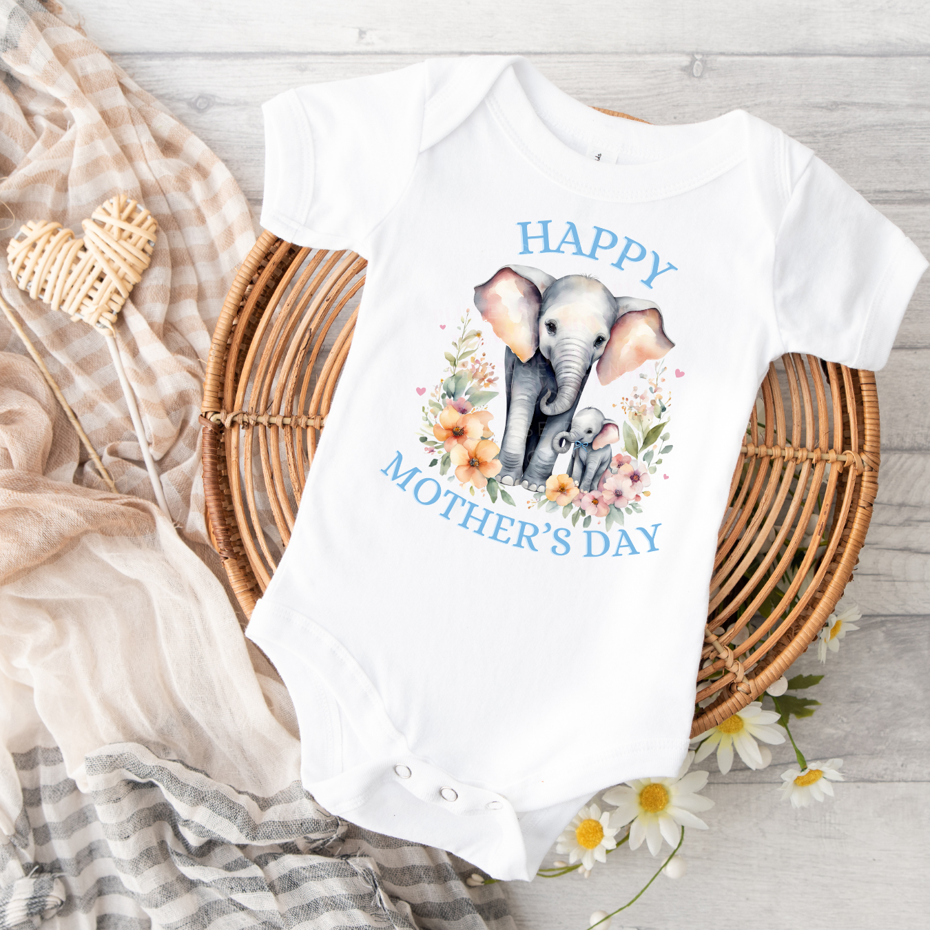 DTF TRANSFER - HAPPY MOTHER'S DAY - BLUE BABY ELEPHANT & MUMMY - 2 SIZES