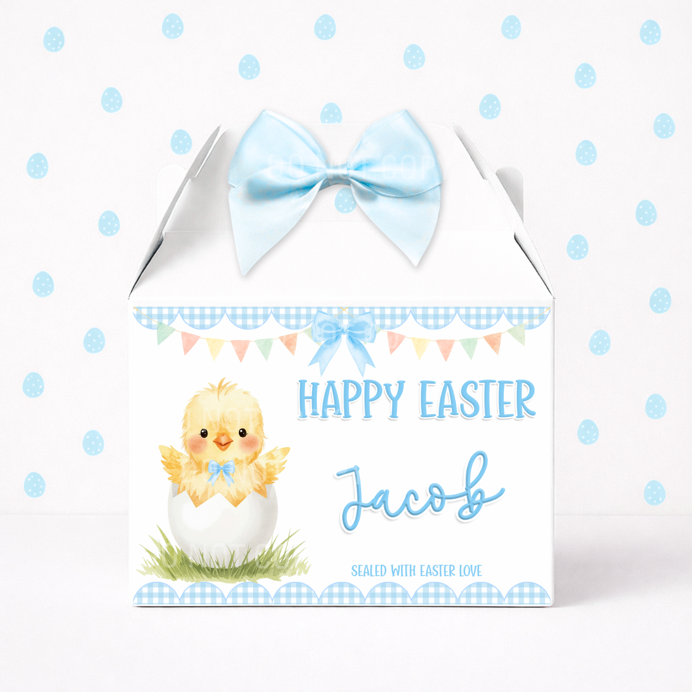 EASTER - EASTER CHICK BLUE GINGHAM - TREAT BOX LABEL