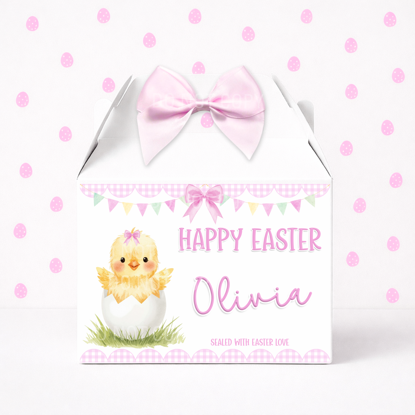 EASTER - EASTER CHICK PINK GINGHAM - TREAT BOX LABEL