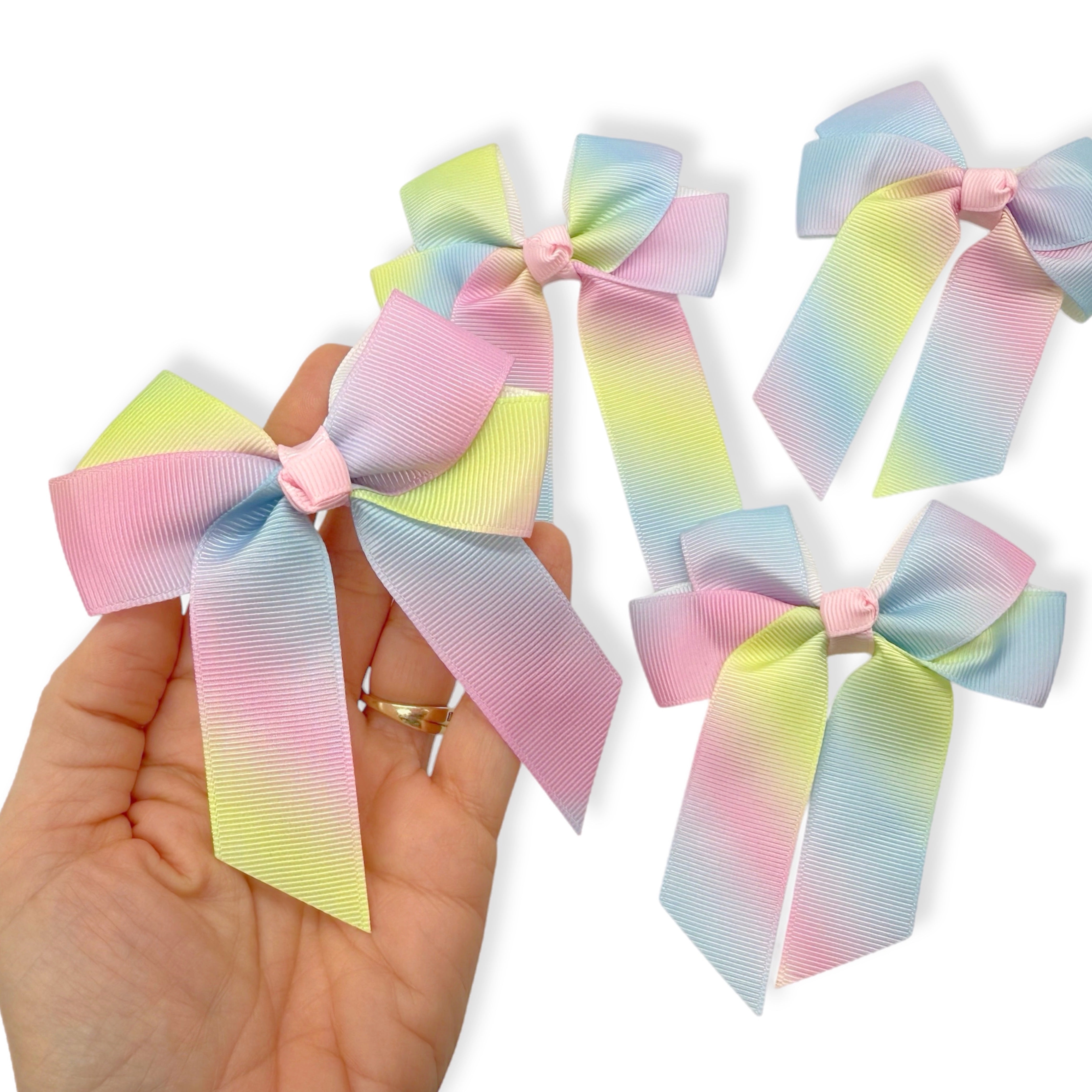 Pastel Rainbow Grosgrain Ribbon Hair Bows 4”