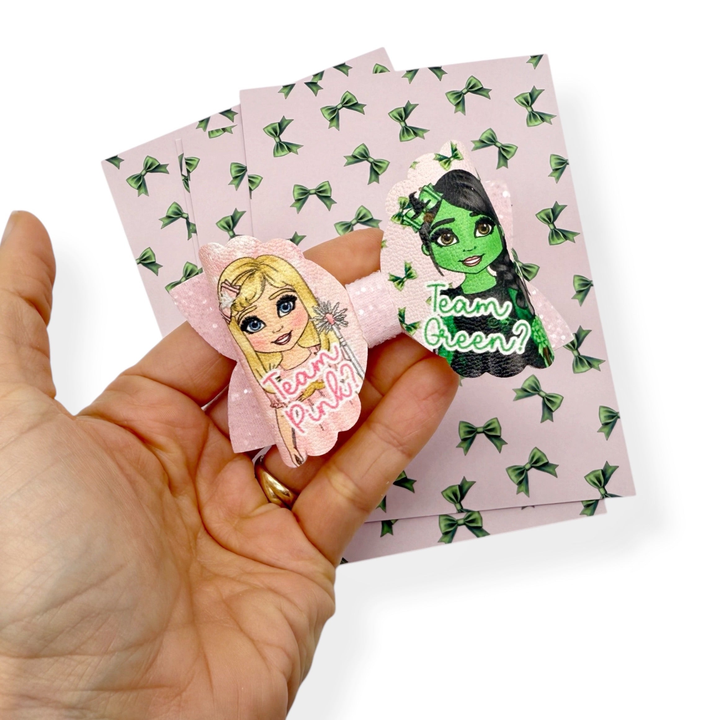 PINK & GREEN BOW- BOW DISPLAY CARDS- SINGLE OR PACK OF 4