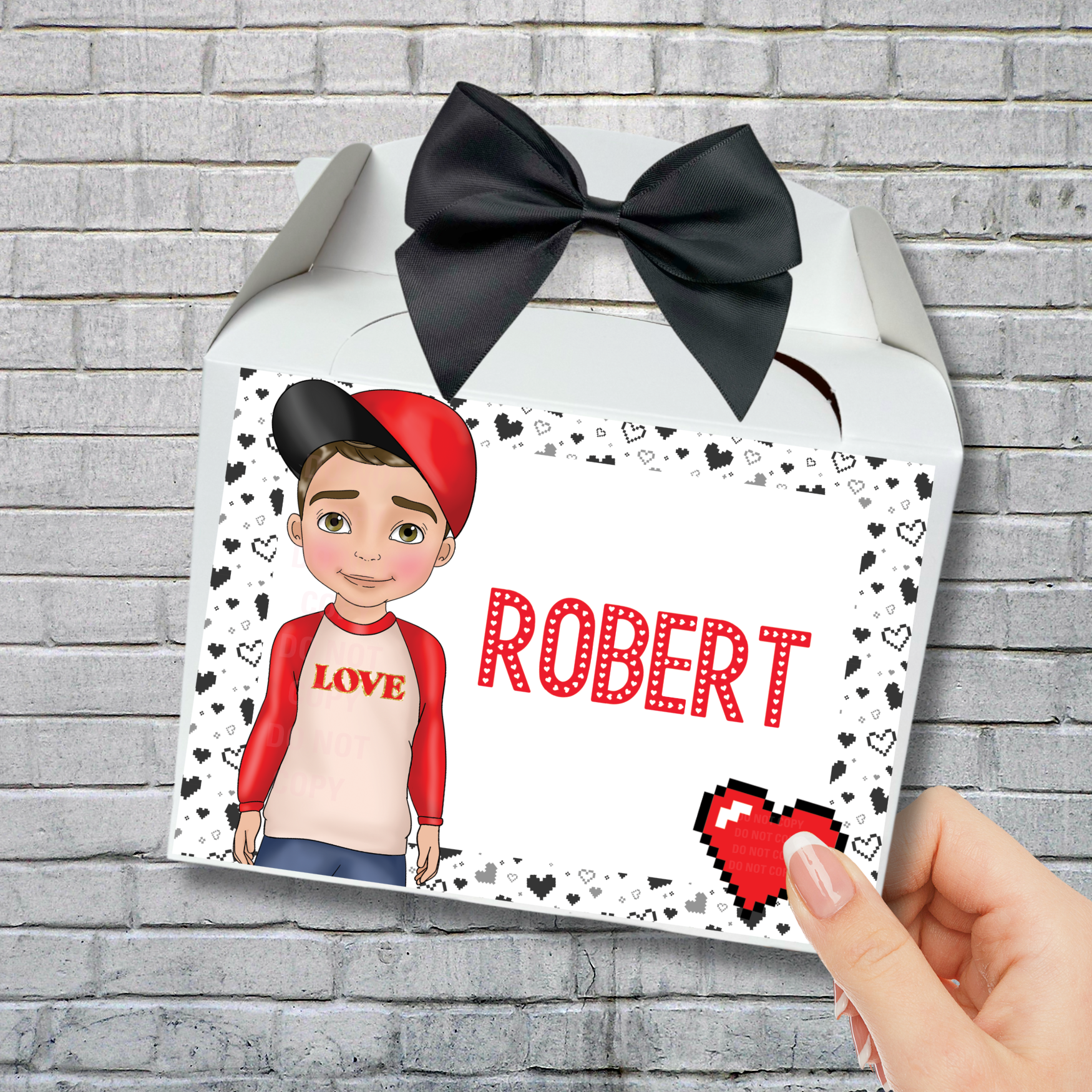 PIXEL HEART DOLLY BOY PRINTED TREAT BOX LABELS- SOLVENT DECAL
