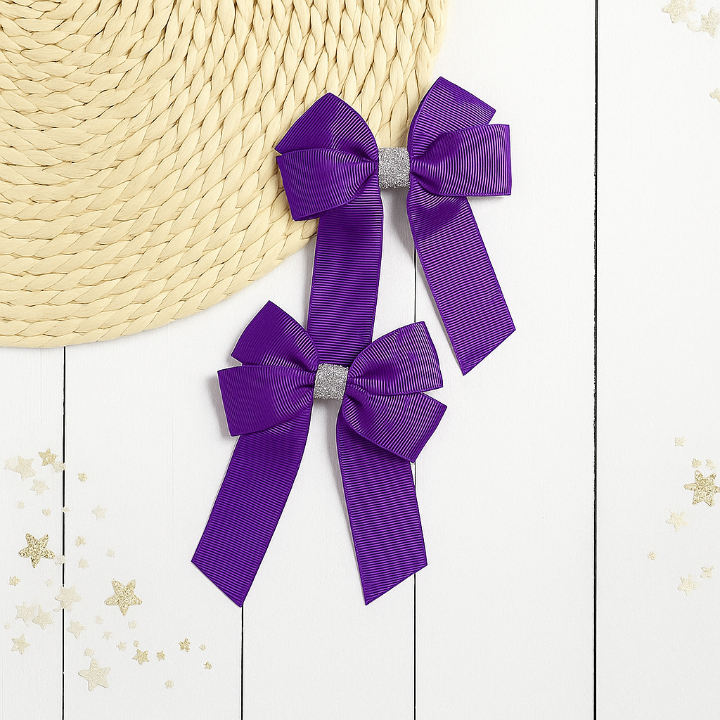 PURPLE & SILVER GLITTER GROSGRAIN 4” RIBBON BOW