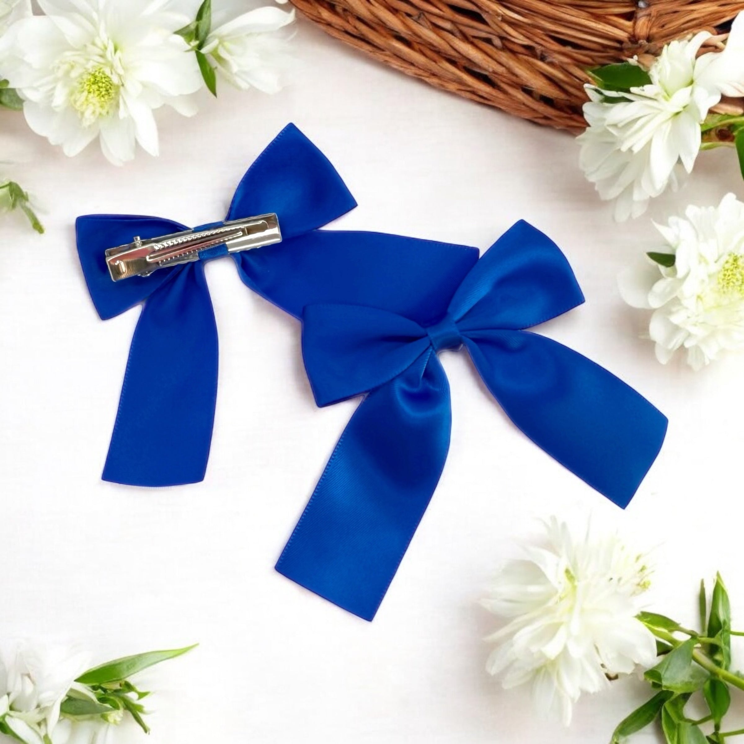 Royal Blue Satin Ribbon Hair Bows- 2.5''