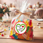 6cm x 6cm adhesive sticker – Just the right size for favour bags, jars, or packaging.
