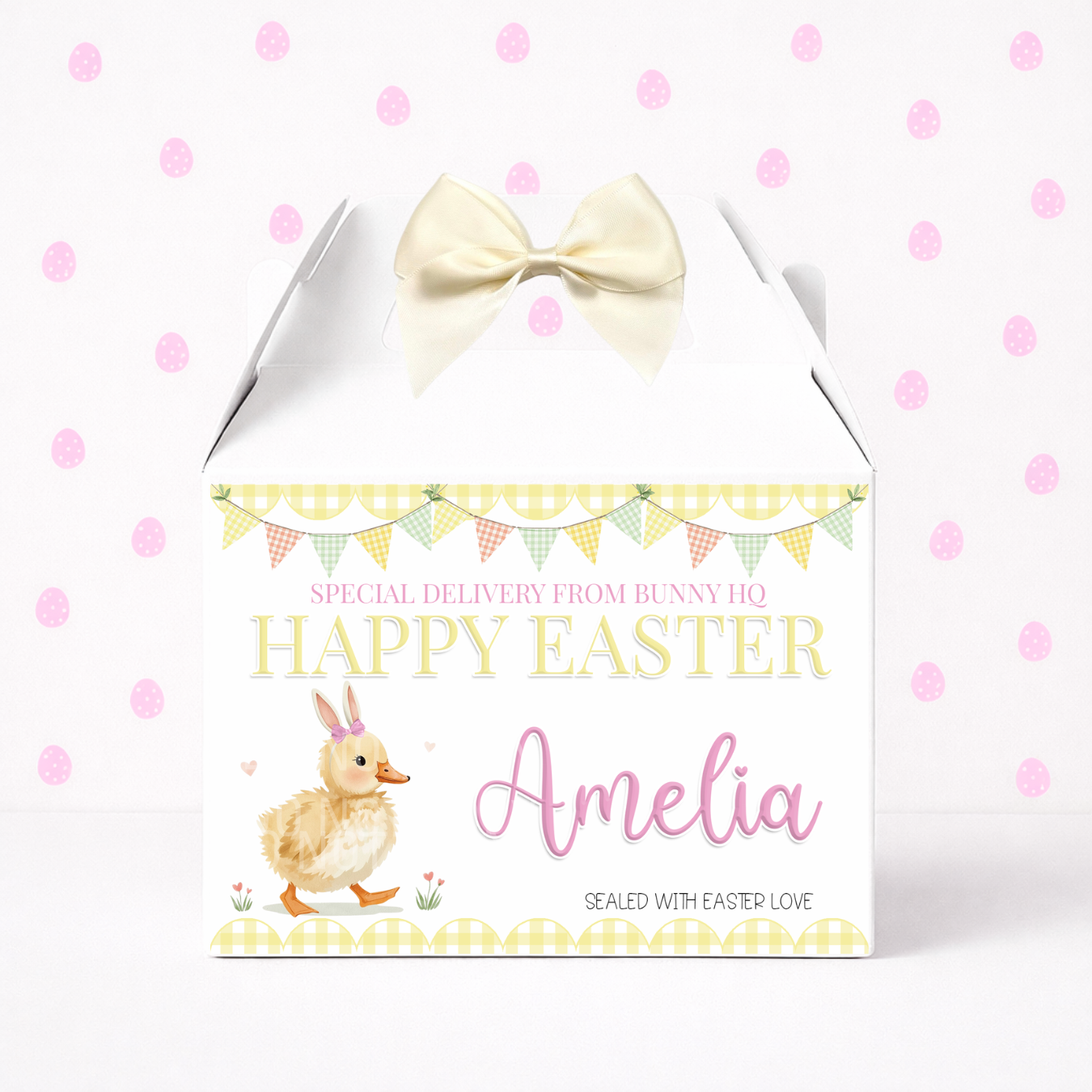 EASTER - LEMON DUCK BUNNY WITH BOW - TREAT BOX LABEL