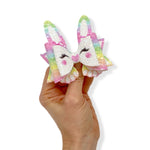 BETSY BUNNY PASTEL RAINBOW DIY CUTOUT CHUNKY GLITTER HAIR BOW LOOPS
