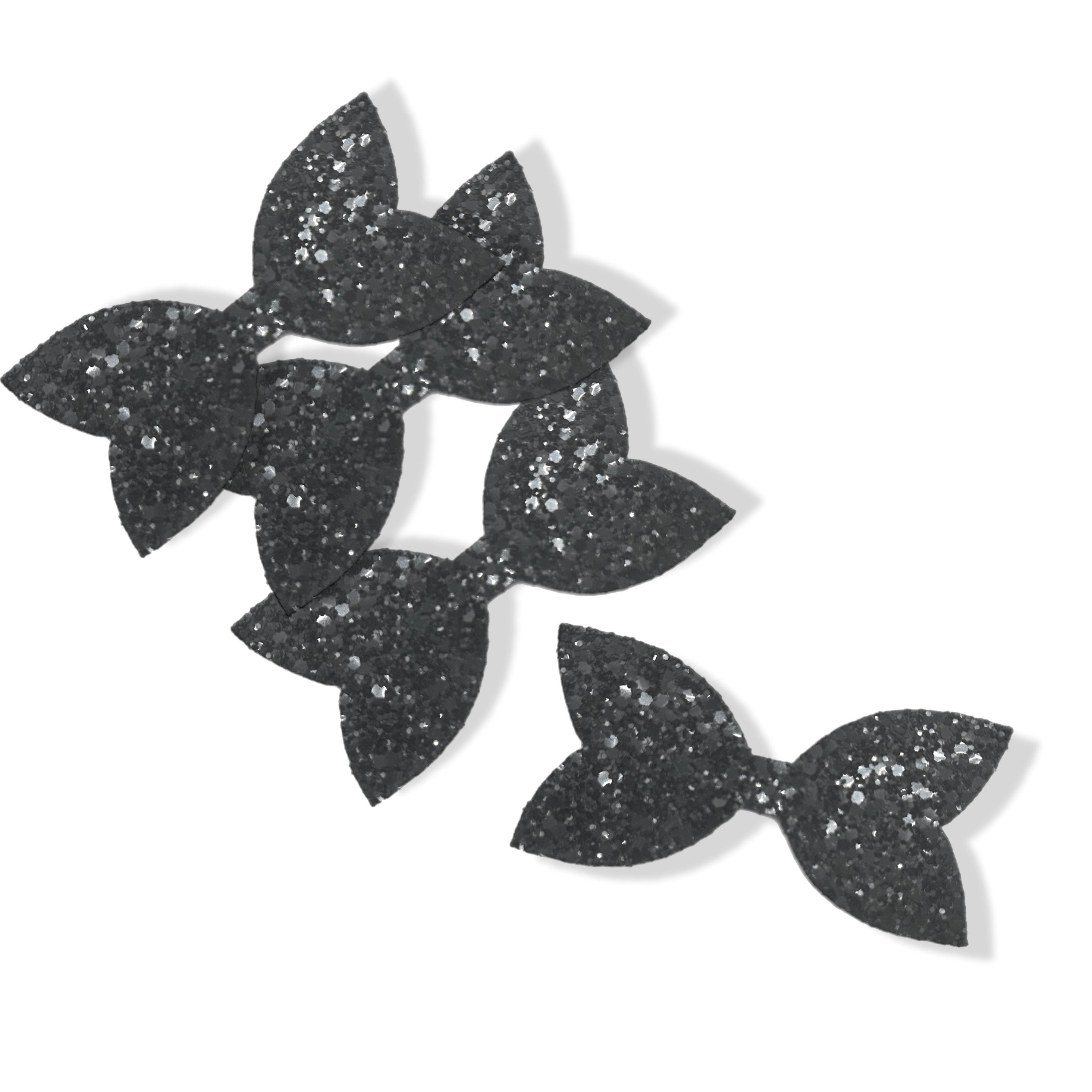Black Pre Cut Chunky Glitter Bow Tails & Centres 3.5”- 4 Pack