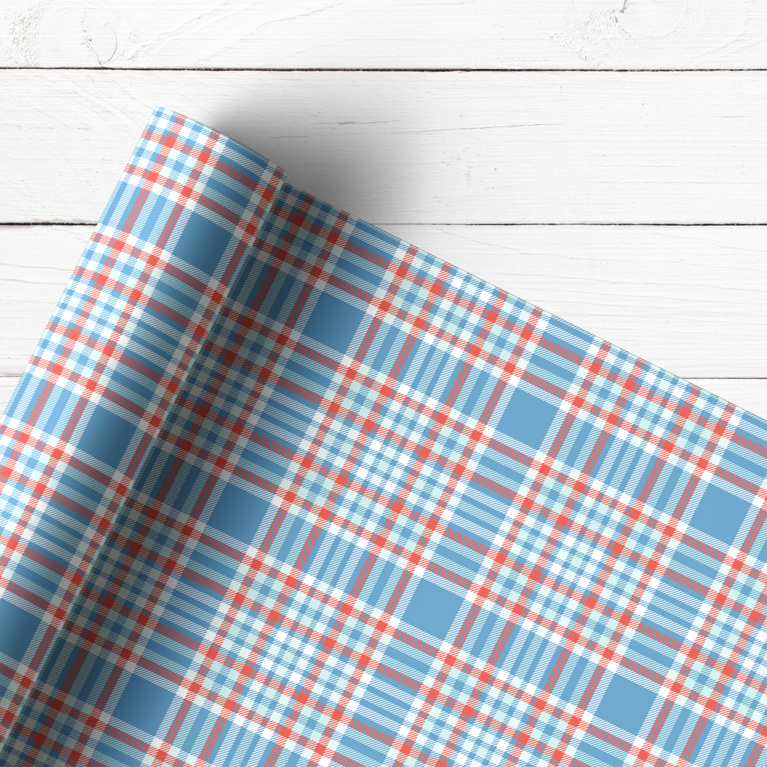 BLUE, RED & WHITE TARTAN | PREMIUM LEATHERETTE FABRIC