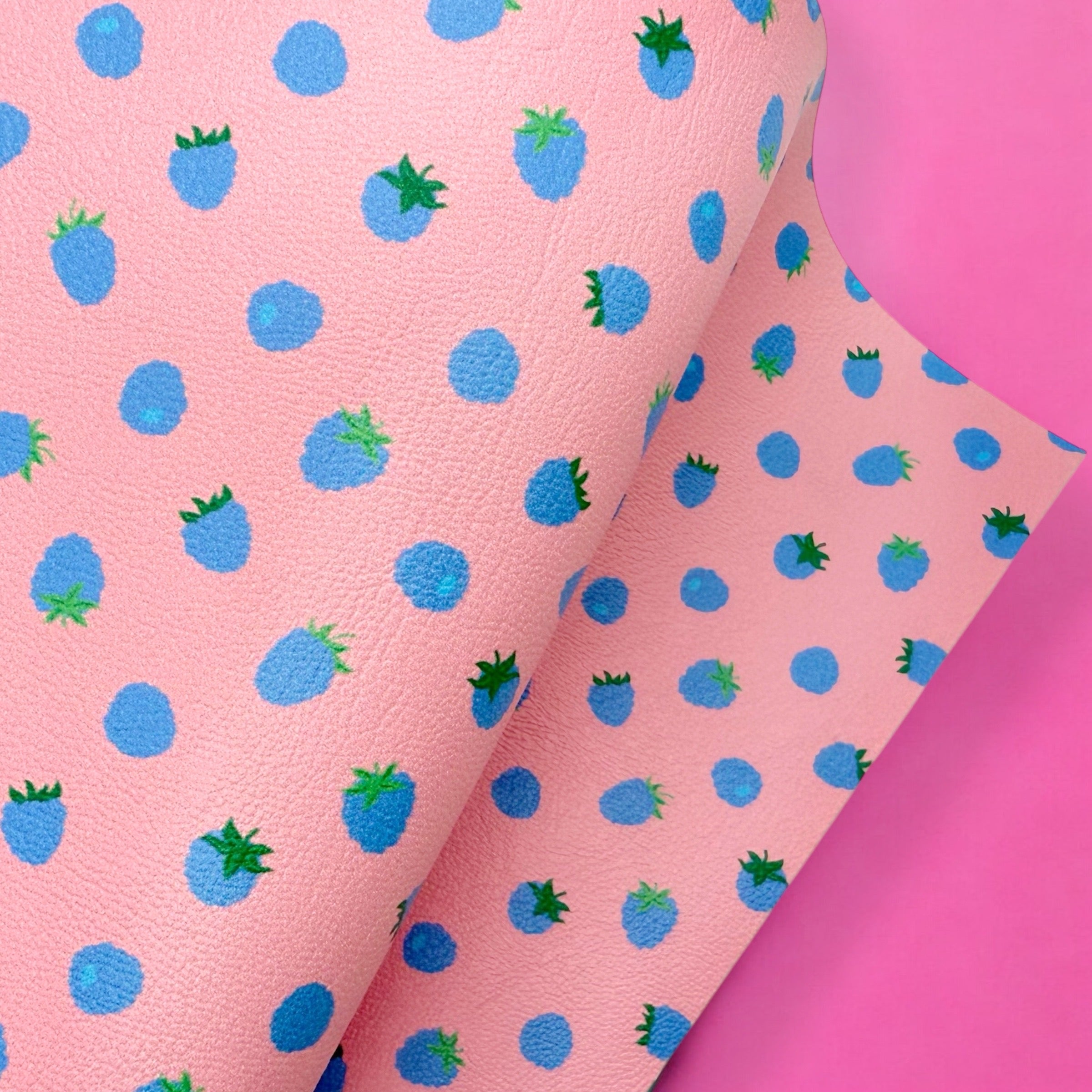 BLUE RASPBERRY ON PINK | PREMIUM FAUX LEATHER FABRICS