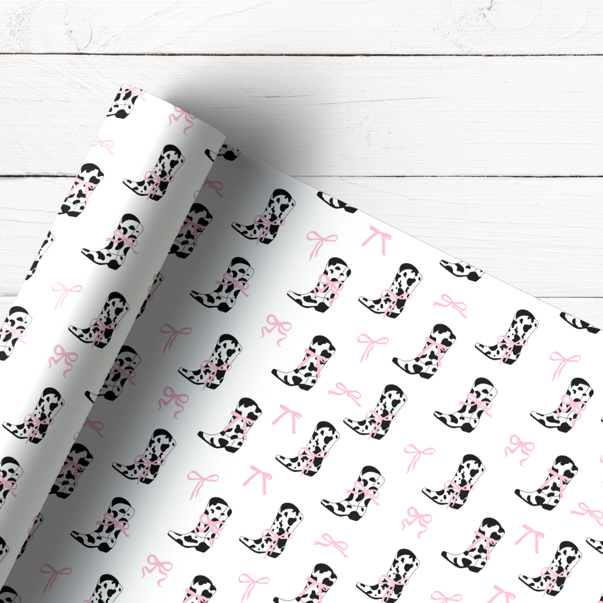 PRETTY BOW COWGIRL BOOTS | PREMIUM LEATHERETTE FABRIC