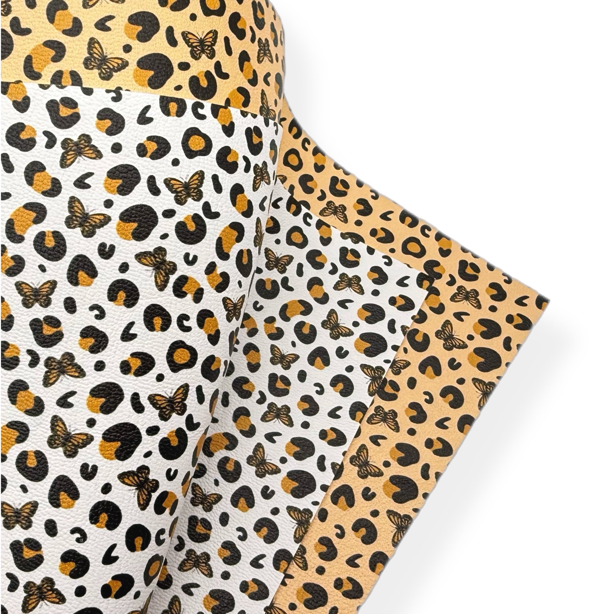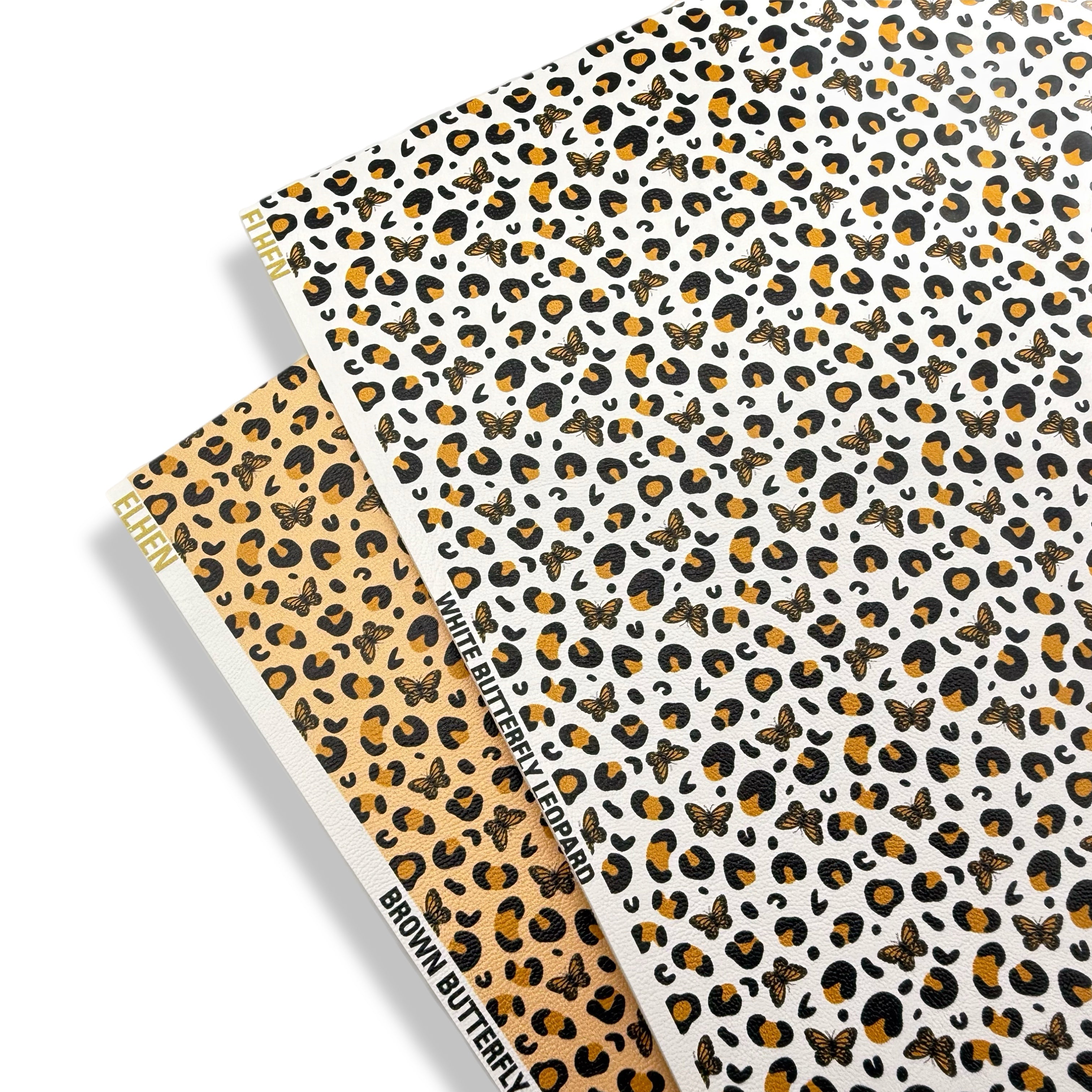 BROWN BUTTERFLY LEOPARD PREMIUM FAUX LEATHER FABRICS
