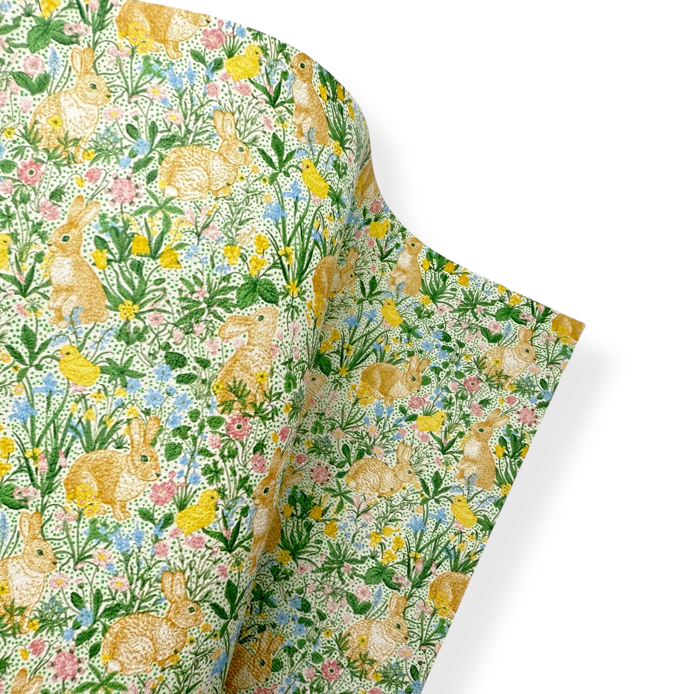 BUNNY & CHICK IN THE FLOWERS PREMIUM FAUX LEATHER FABRICS