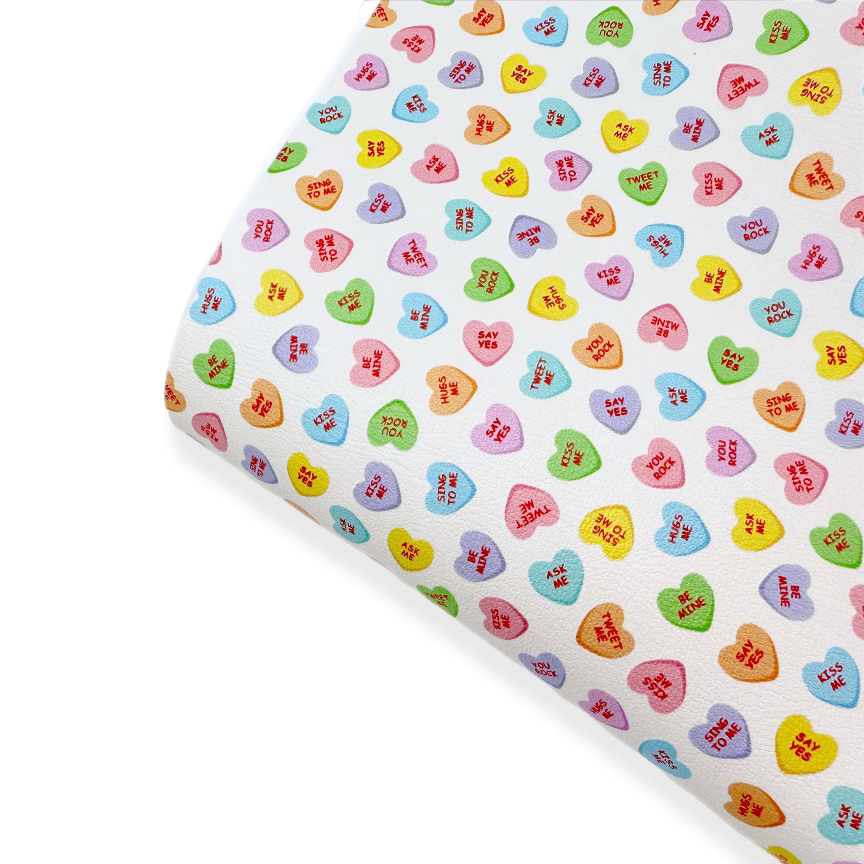 CANDY CONVERSATION HEARTS PREMIUM FAUX LEATHER FABRICS