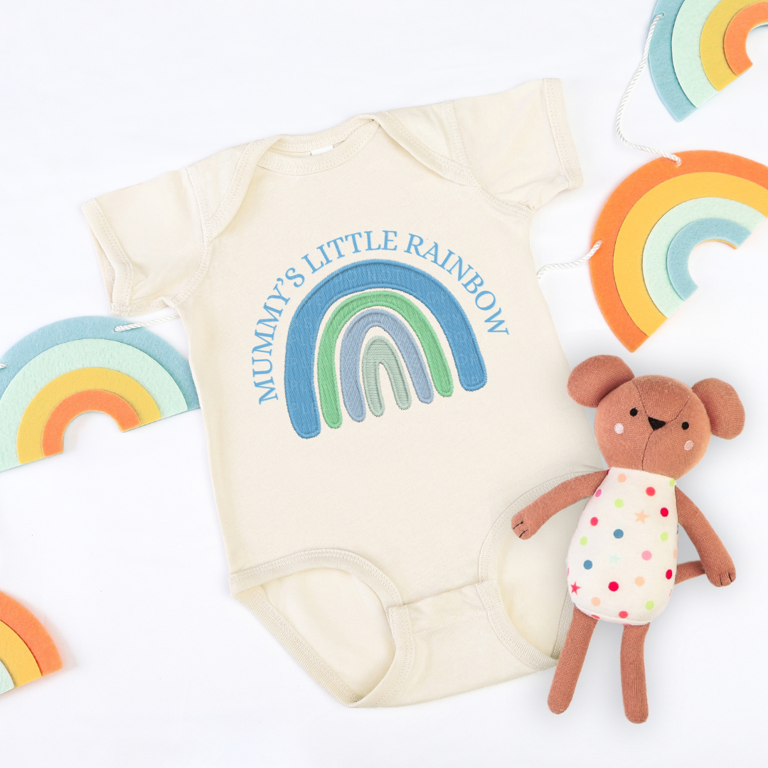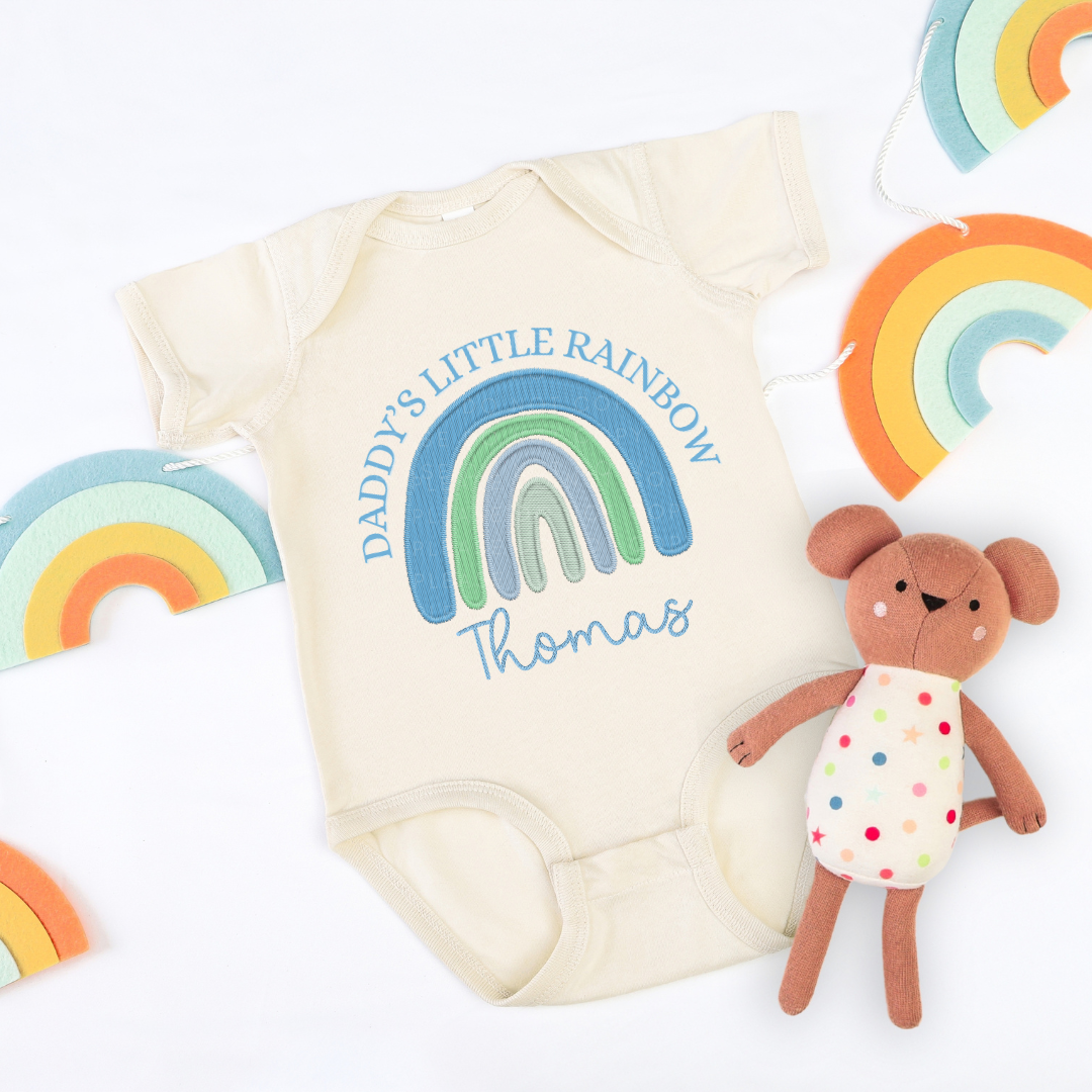 CUSTOM DTF TRANSFER - EMBROIDERY EFFECT- LITTLE BLUE RAINBOW
