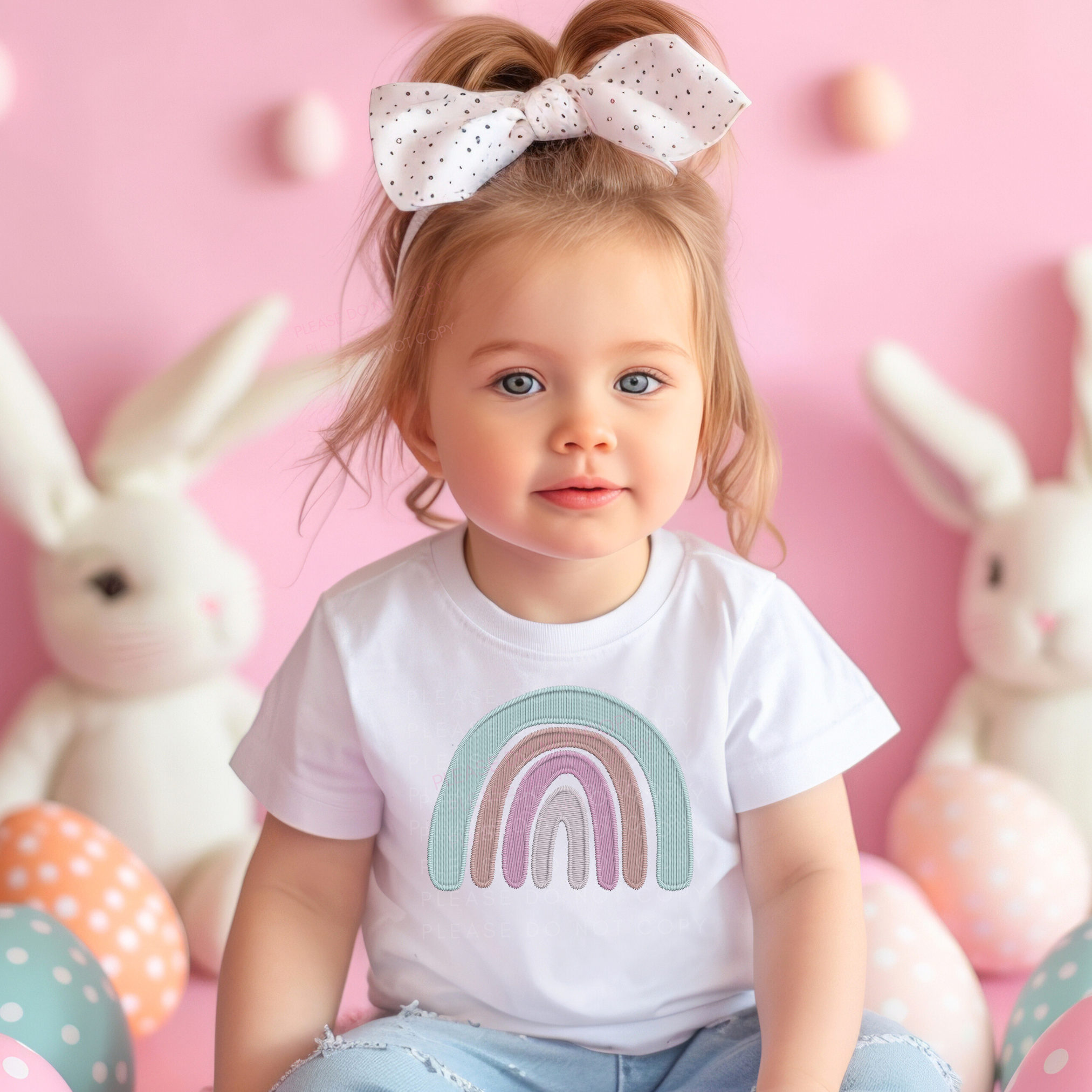 CUSTOM DTF TRANSFER - EMBROIDERY EFFECT- MUTED PASTELS RAINBOW
