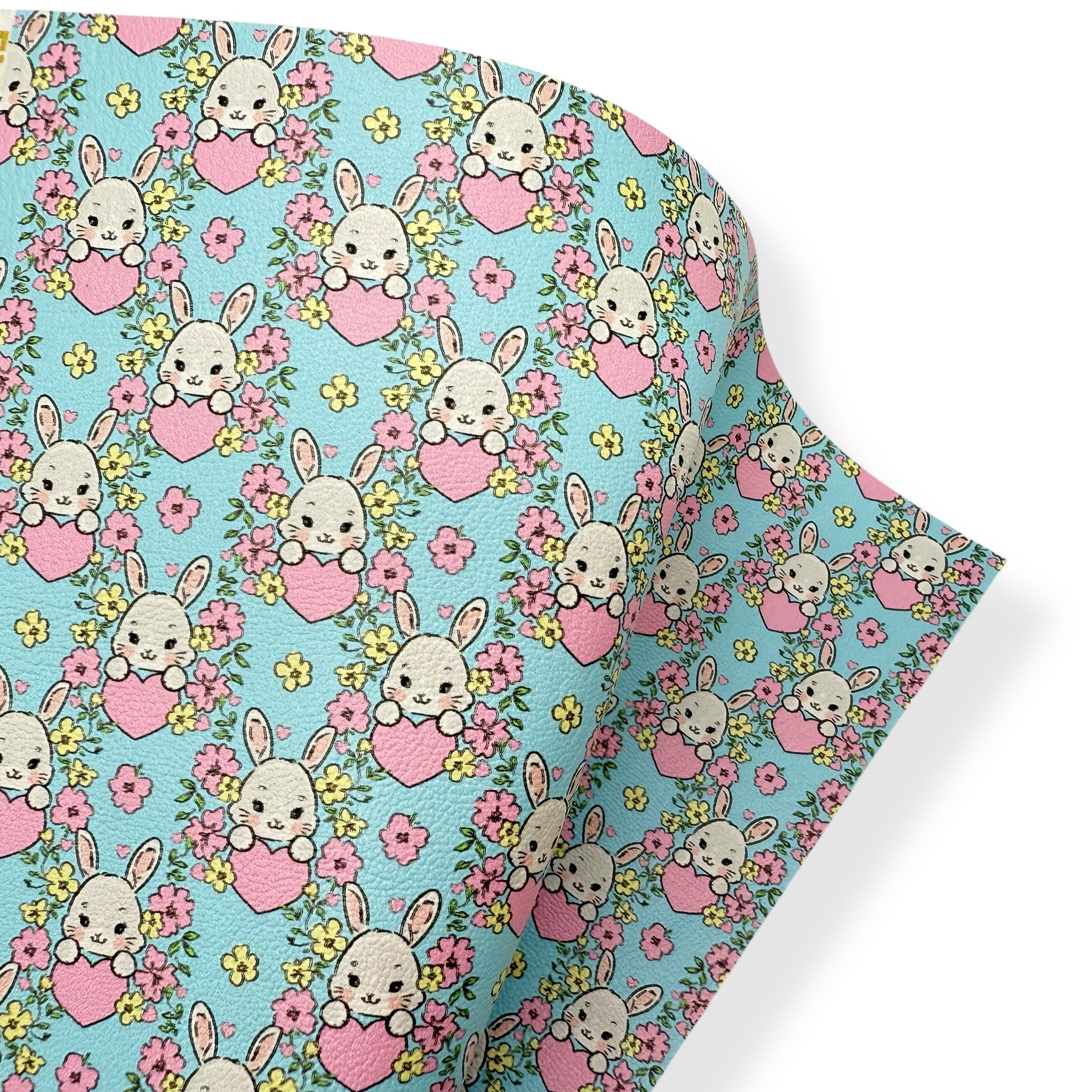 CUTIE LOVE HEART BUNNY PREMIUM FAUX LEATHER FABRICS